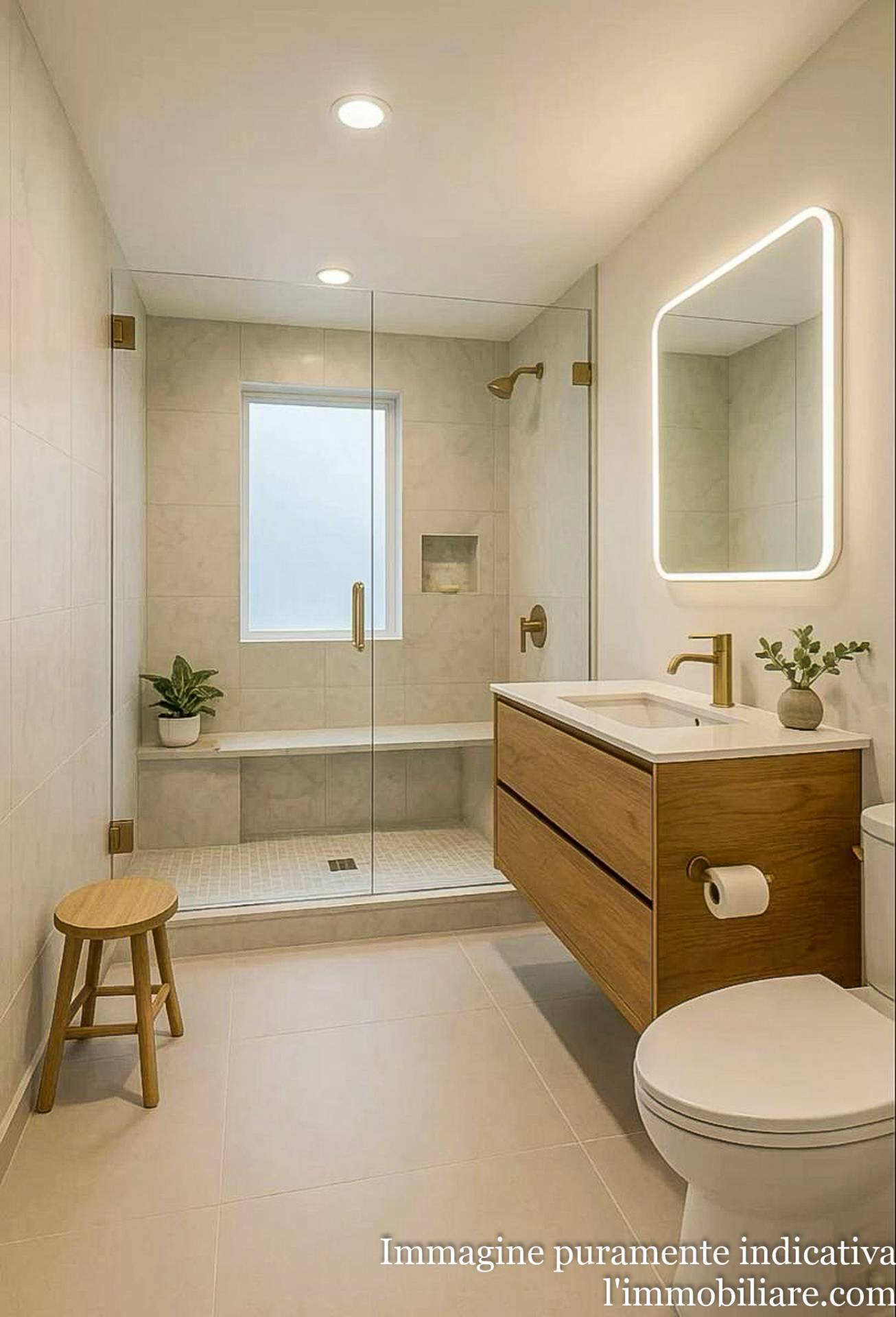Il bagno, anchesso rinnovato con finiture contemporanee, completa labitazione con un tocco di eleganza funzionale.