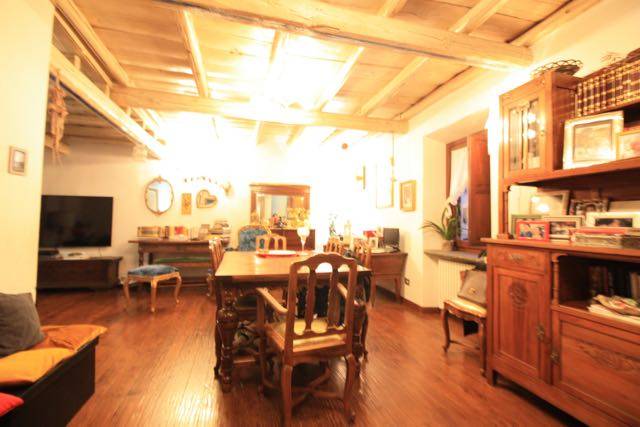 In apertura da un delizioso ingresso si entra direttamente nel living dove si trova un camino in peperino d'epoca ed il salotto, che si affacciano frontalmente su via Roma, cui si contrappone sul lato sinistro un grazioso cucinotto, un bagno e un piccolo balconcino.