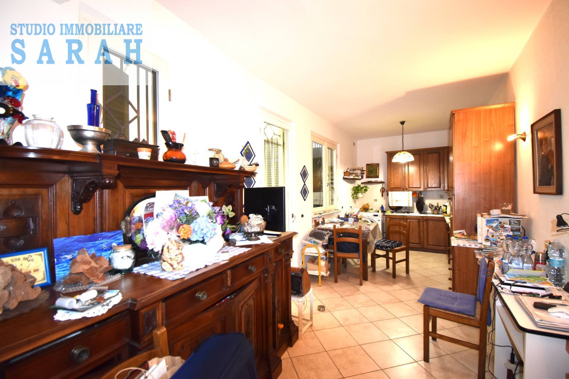 La zona giorno composta da un salotto d'ingresso, una cucina abitabile con accesso alla corte interna.