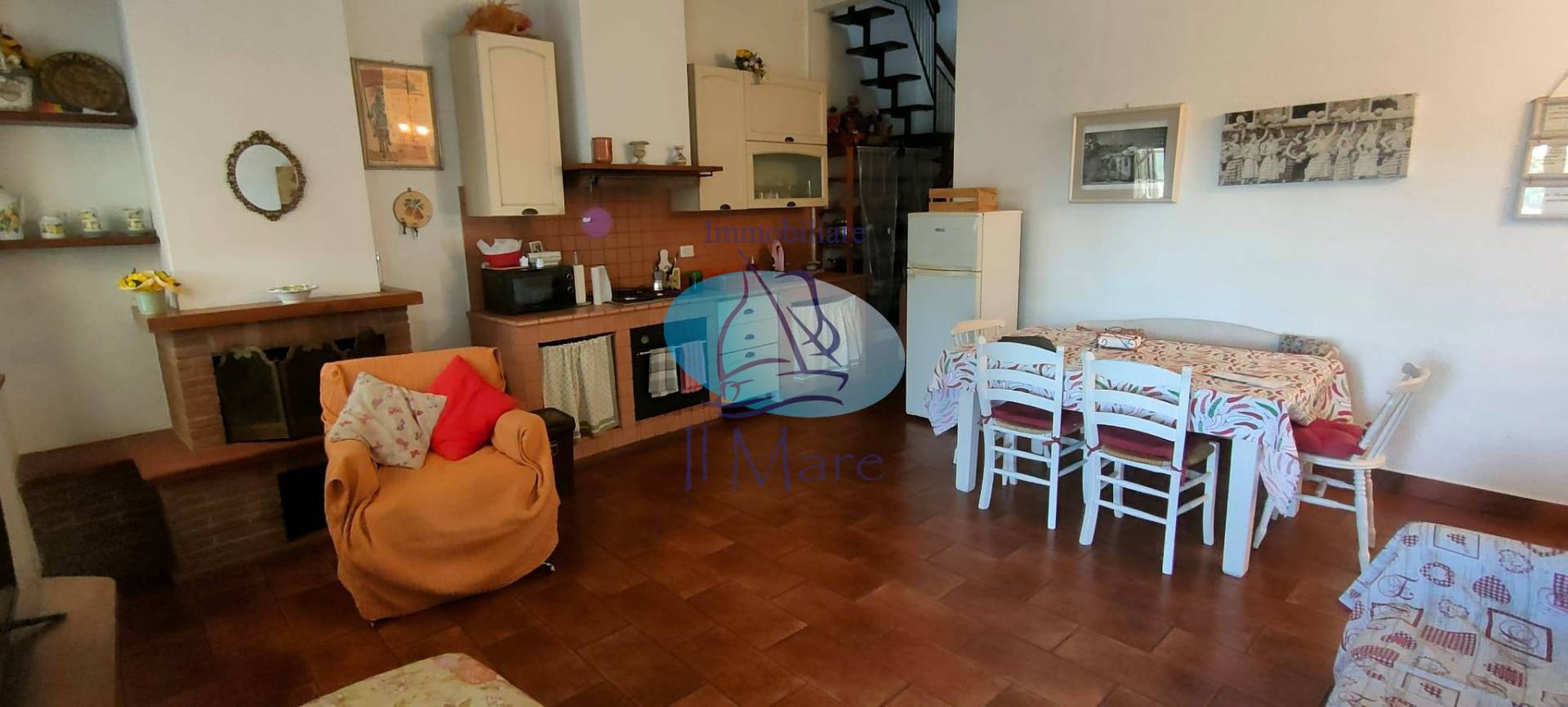 L'immobile si compone di una ampia zona giorno con un bel caminetto e una cucina a vista in muratura con un balcone semi vivibile ( tenda da sole) dove poter mettere un tavolo per cenare all'aperto, la zona notte presenta una camera matrimoniale e una camera media, un bagno con doccia finestrato, salendo una scala in legno si arriva ad una stanza mansardata dove si pu usufruire di un comodissimo ripostiglio o come nello stato attuale di una terza camera.