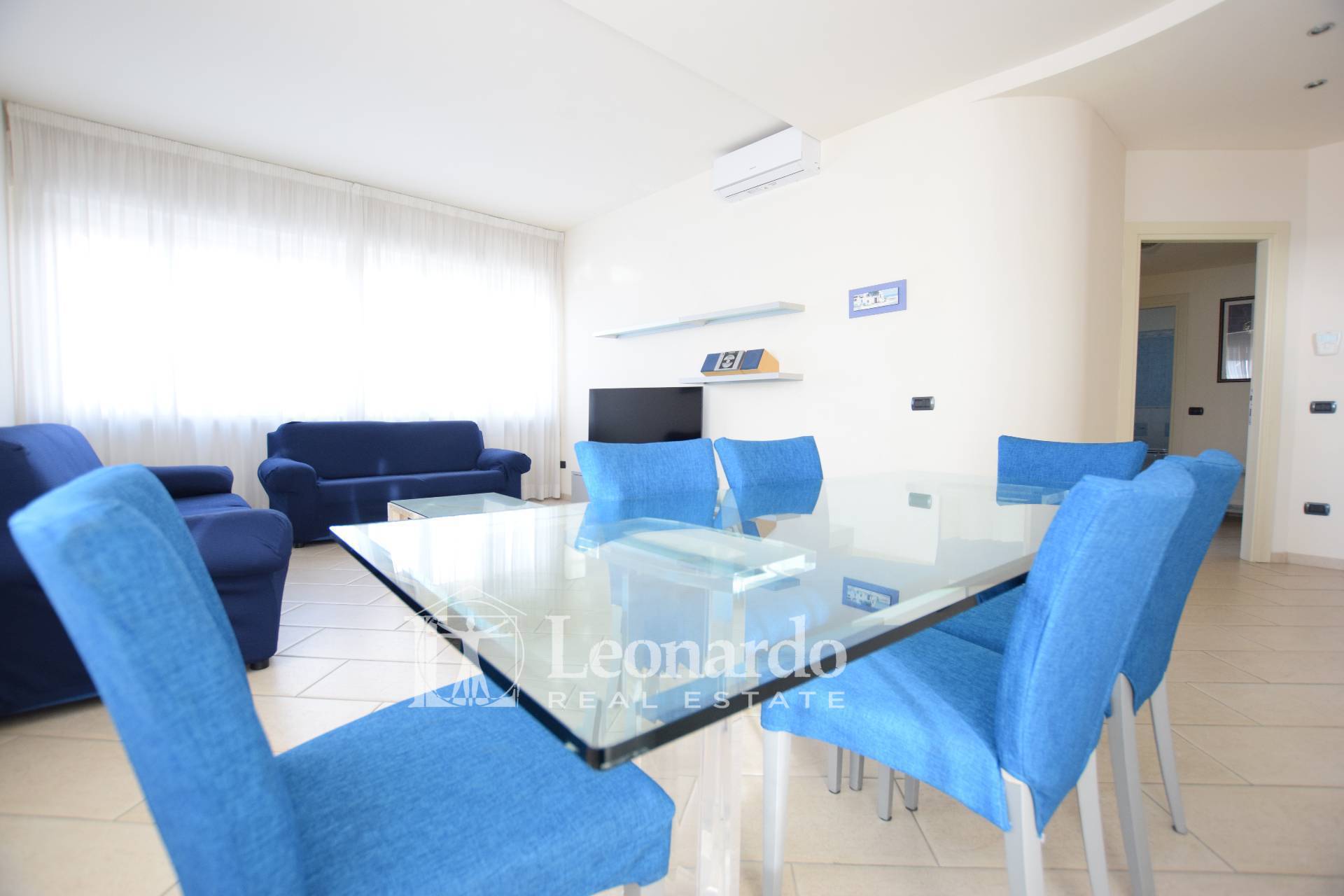 Caratteristiche principali: ' Vista mare mozzafiato ' Appartamento ristrutturato e in ottime condizioni ' 140 mq di superficie abitabile ' Terrazza di 12 mq con affaccio sul mare ' Tre camere da letto spaziose ' Due bagni moderni ' Ampia e luminosa zona giorno ' Cucina abitabile con accesso alla terrazza ' Balcone con zona lavanderia ' Posto auto e posto bici condominiali ' Ascensore ' Aria condizionata Lappartamento Situato al secondo piano di un elegante palazzo con ascensore, limmobile offre spazi ben distribuiti e finiture curate.