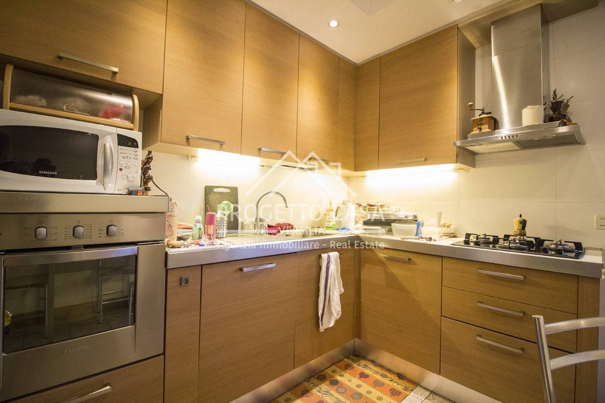 Adiacente al salone, troviamo la cucina abitabile, completa di un balcone di servizio attrezzato con pilozzo.