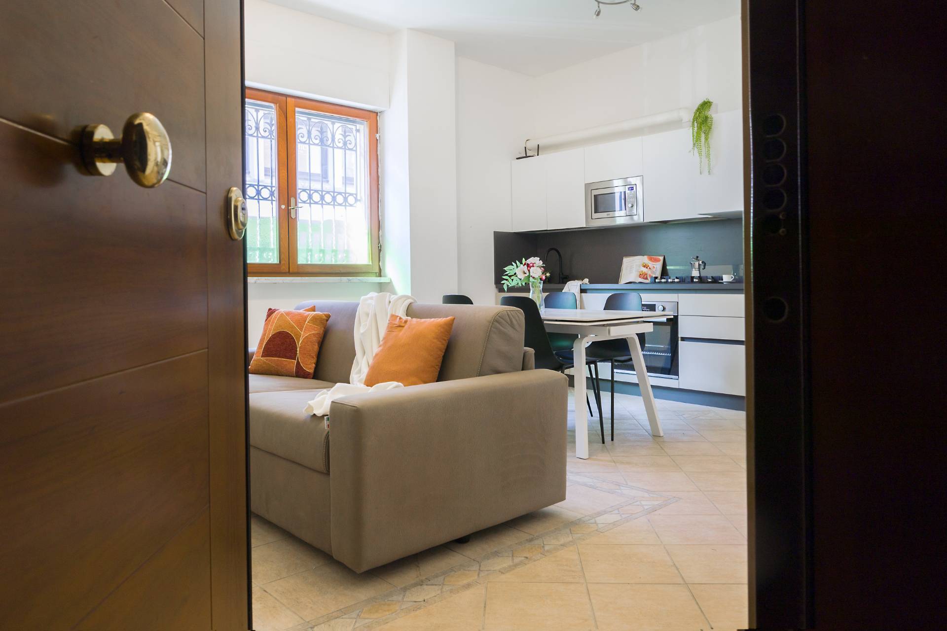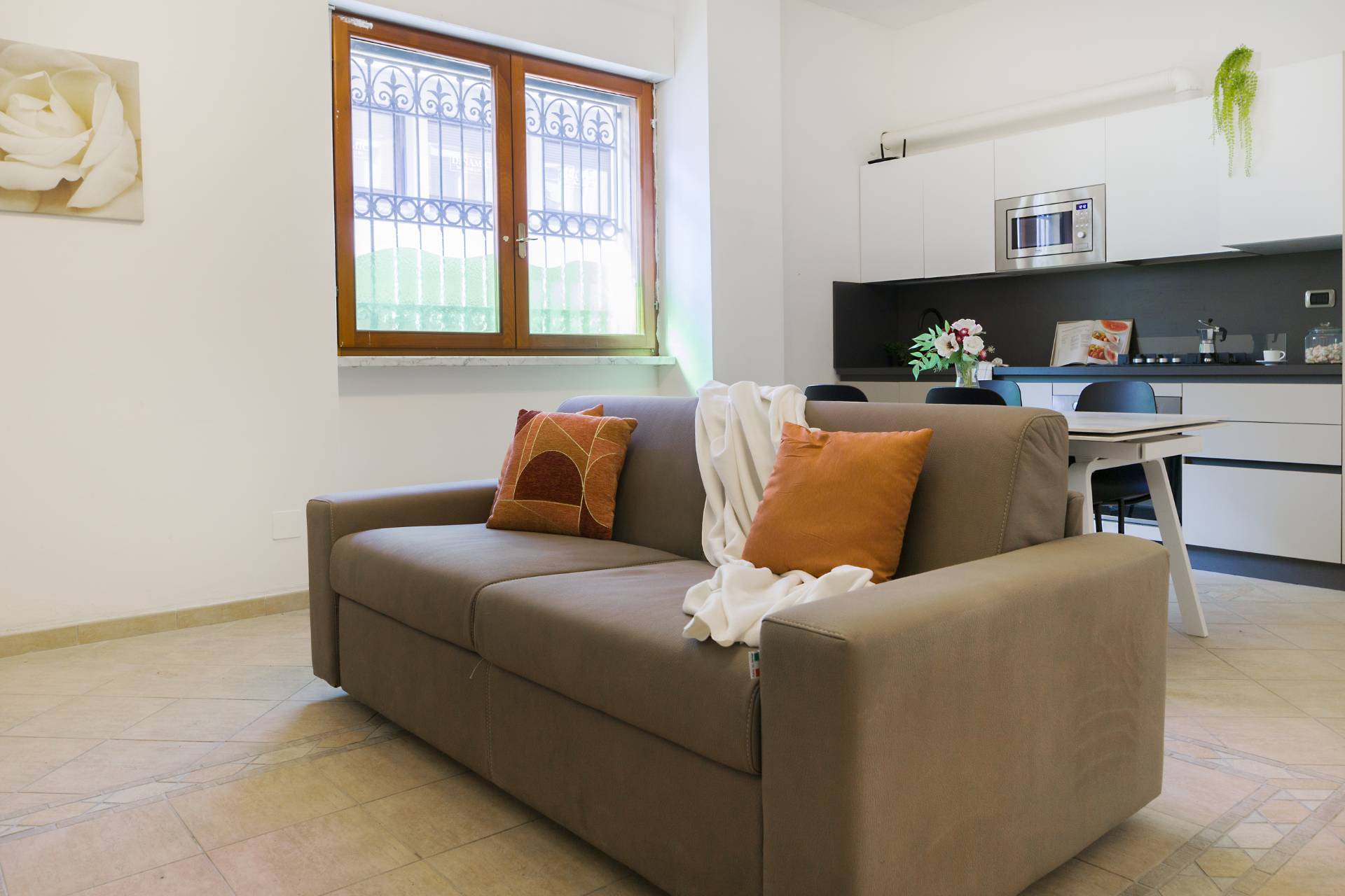 Stiamo parlando di un luminoso appartamento composto da soggiorno con angolo cottura, camera matrimoniale, camera singola e servizio.
