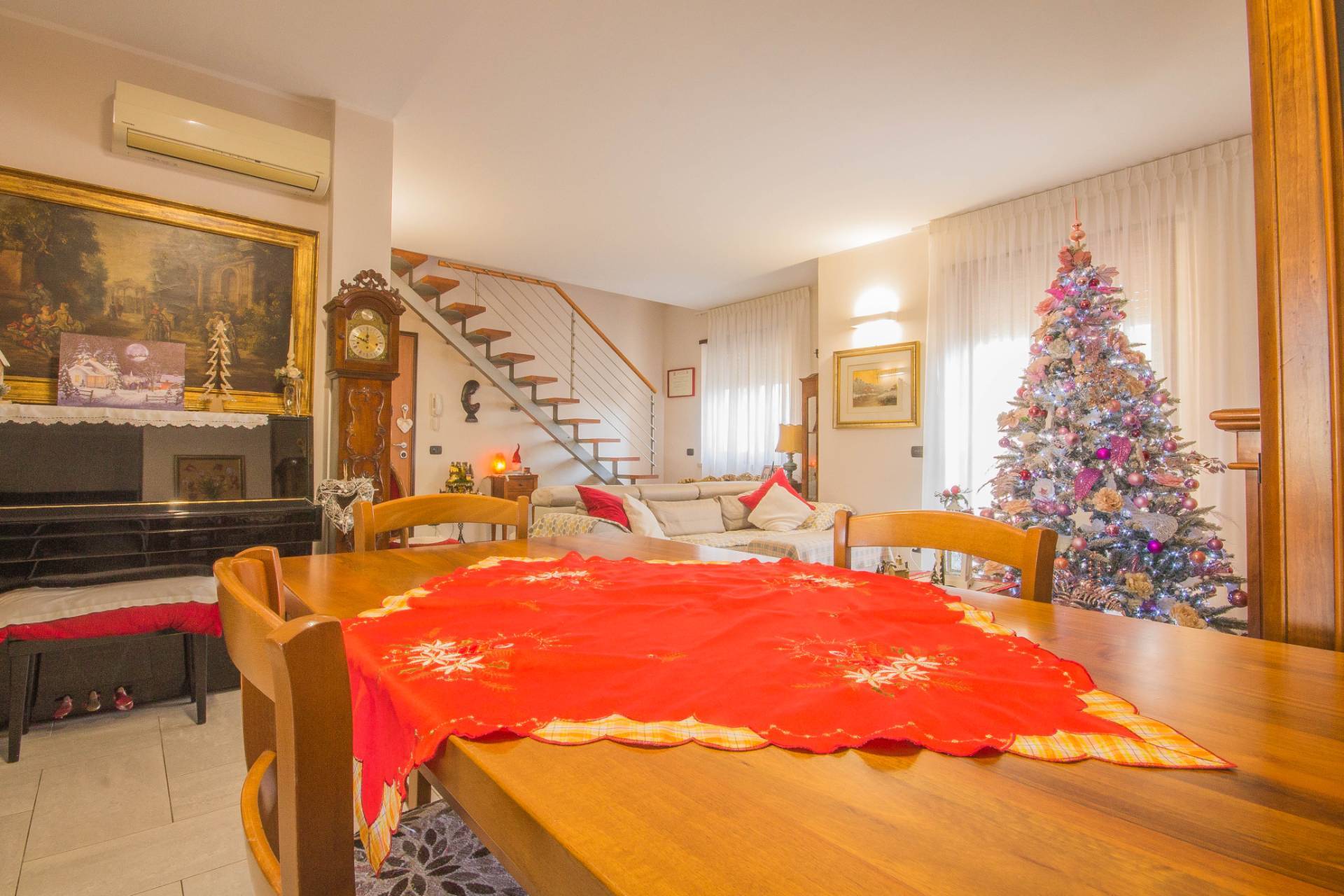 Al piano seminterrato garage di 23 mq. Riscaldamento a pavimento e aria condizionata in tutte le stanze.