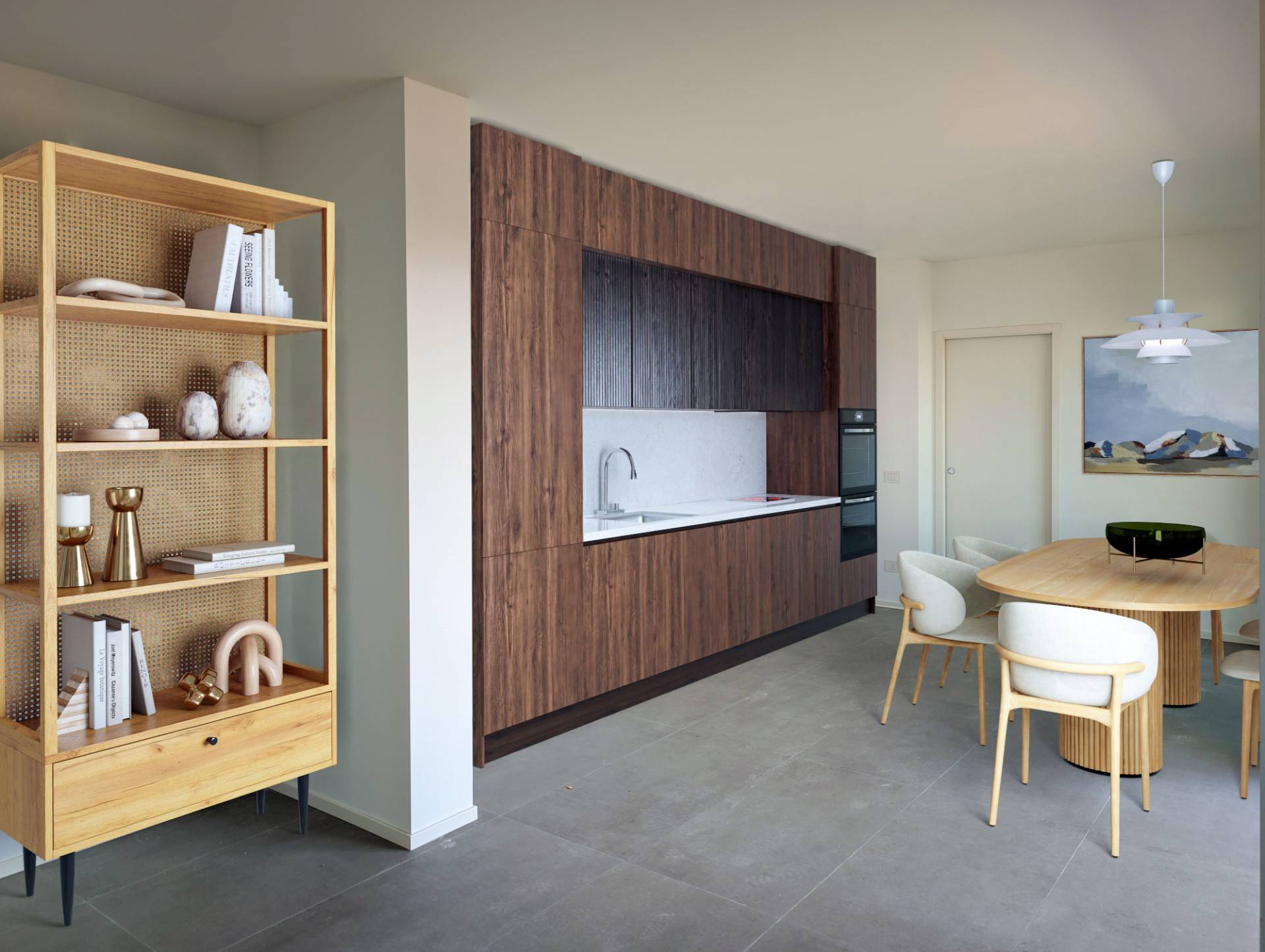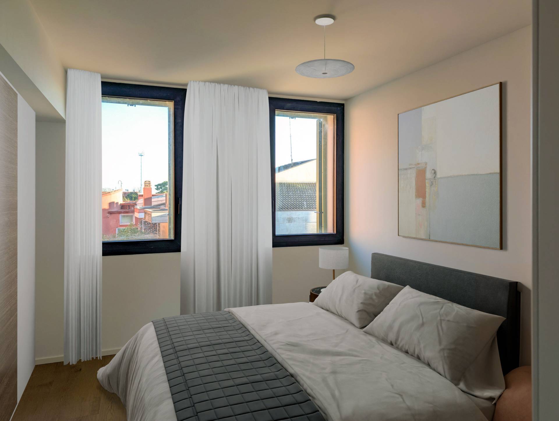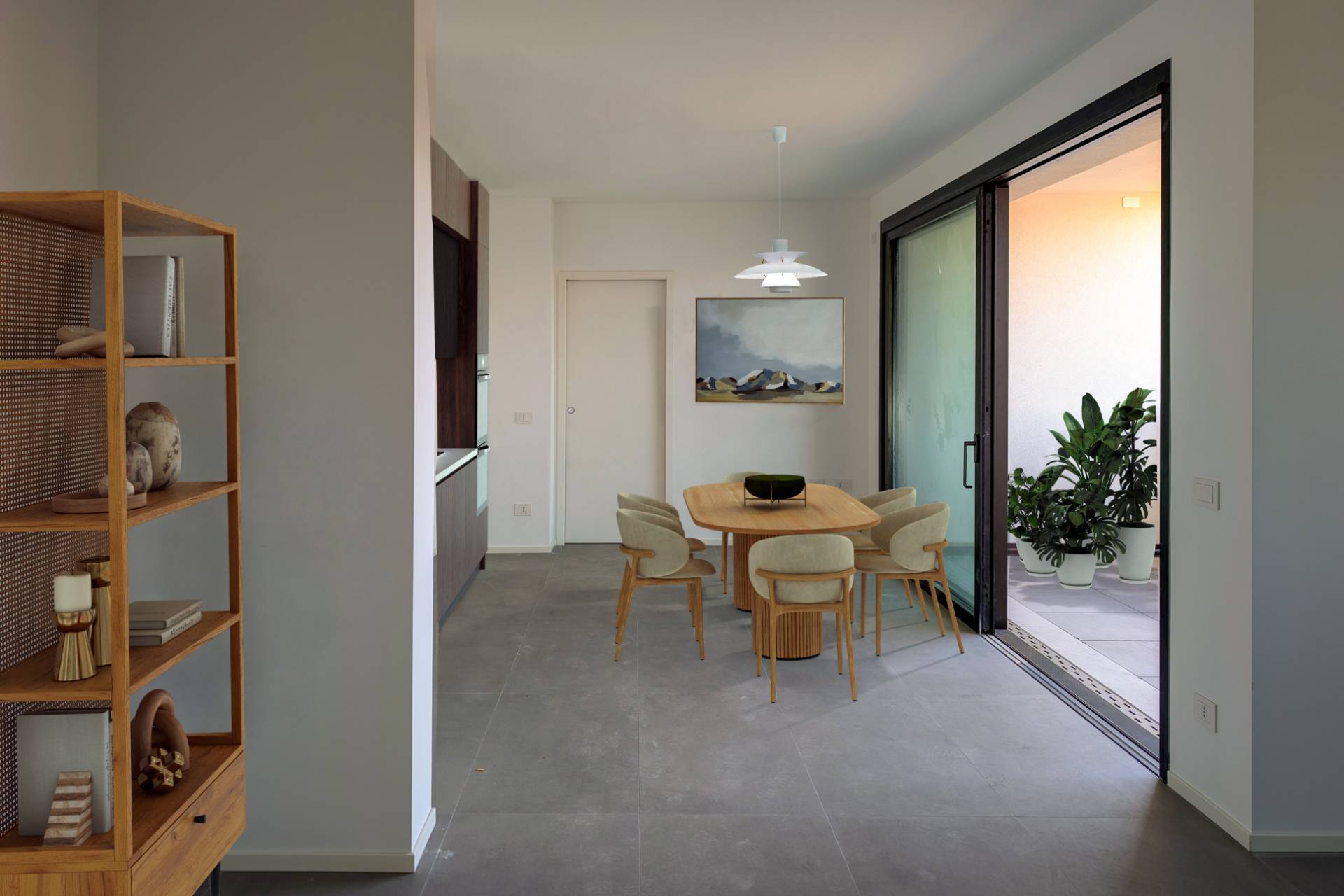 Le finiture e tecnologie di quest'immobile comprendono: - Riscaldamento e raffrescamento a pavimento con pompa di calore; - Pannelli fotovoltaici (autoconsumo collettivo); - Placche elettriche di alta gamma (Vimar serie Linea); - Impianto canalizzato di ventilazione meccanica controllata: - Predisposizione per impianto d'allarme; - Finiture Marazzi di alta gamma nella zona giorno - Parquet Berti in rovere naturale nella zona notte; - Bagni con rivestimento ceramica Marazzi e box doccia gi installato; - Porte interne in legno laccato bianco; - Serramenti esterni SCHCO in alluminio; - Addolcitore centralizzato condominiale.