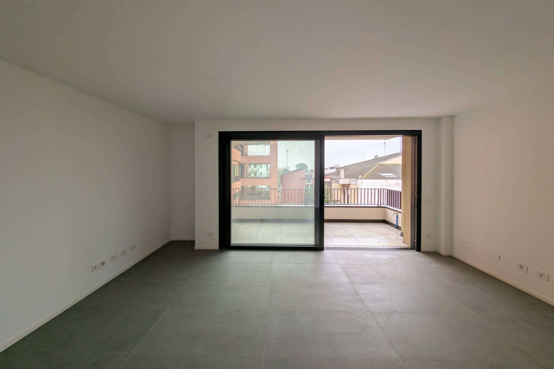 Appartamento al secondo e ultimo piano, servito da ascensore, composto da: soggiorno - cucina (30 mq) con terrazzo di 10 mq, camera matrimoniale (14 mq), bagno.