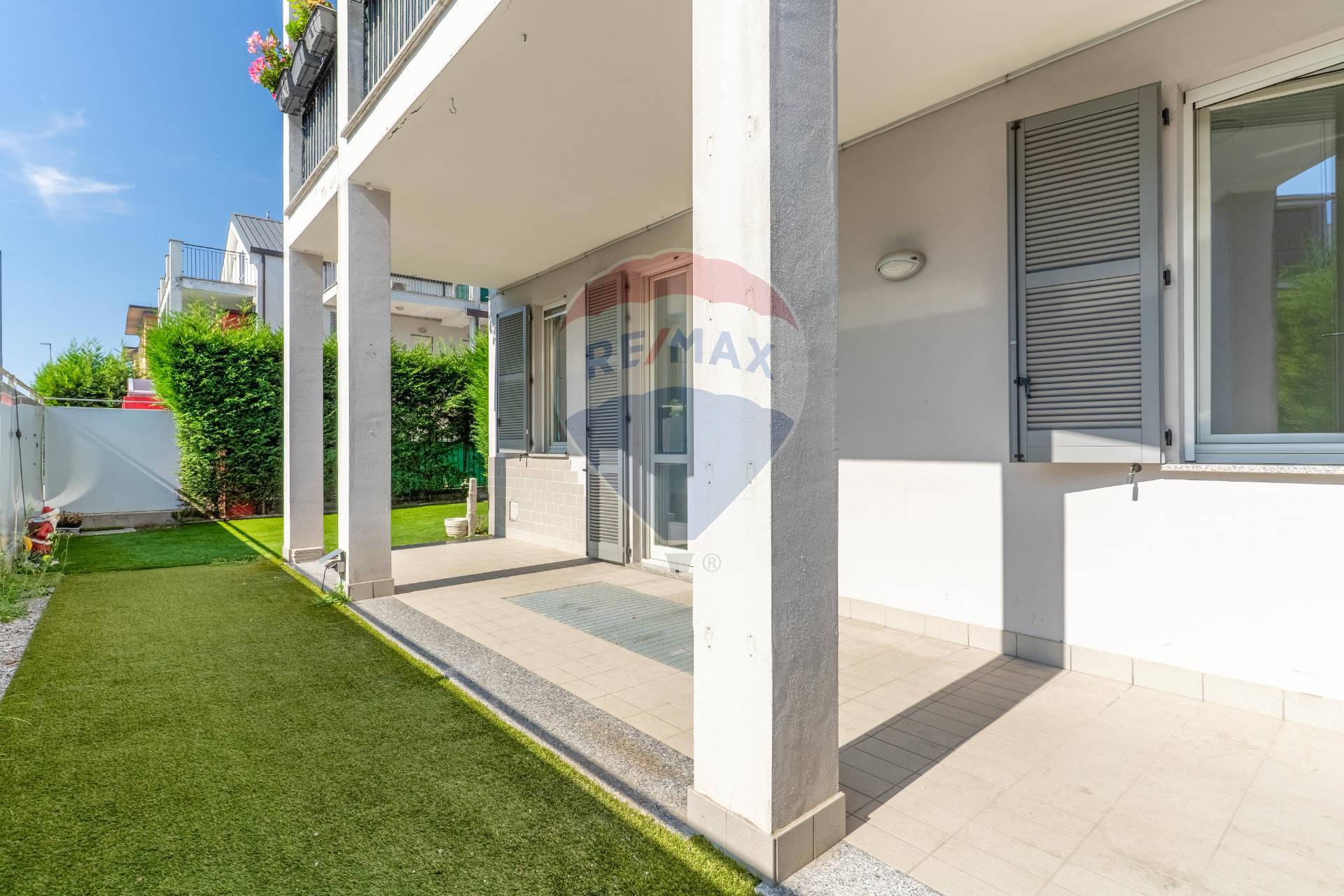 In una tranquilla e riservata zona residenziale di Villasanta, proponiamo in vendita un appartamento al piano terra con giardino privato, ampia cantina collegata internamente e box di 25 mq. Limmobile, edificato nel 2010, ha una superficie di 102 mq ed composto da una luminosa zona giorno open-space con accesso diretto al giardino su tre lati, disimpegno, bagno finestrato e due camere da letto.