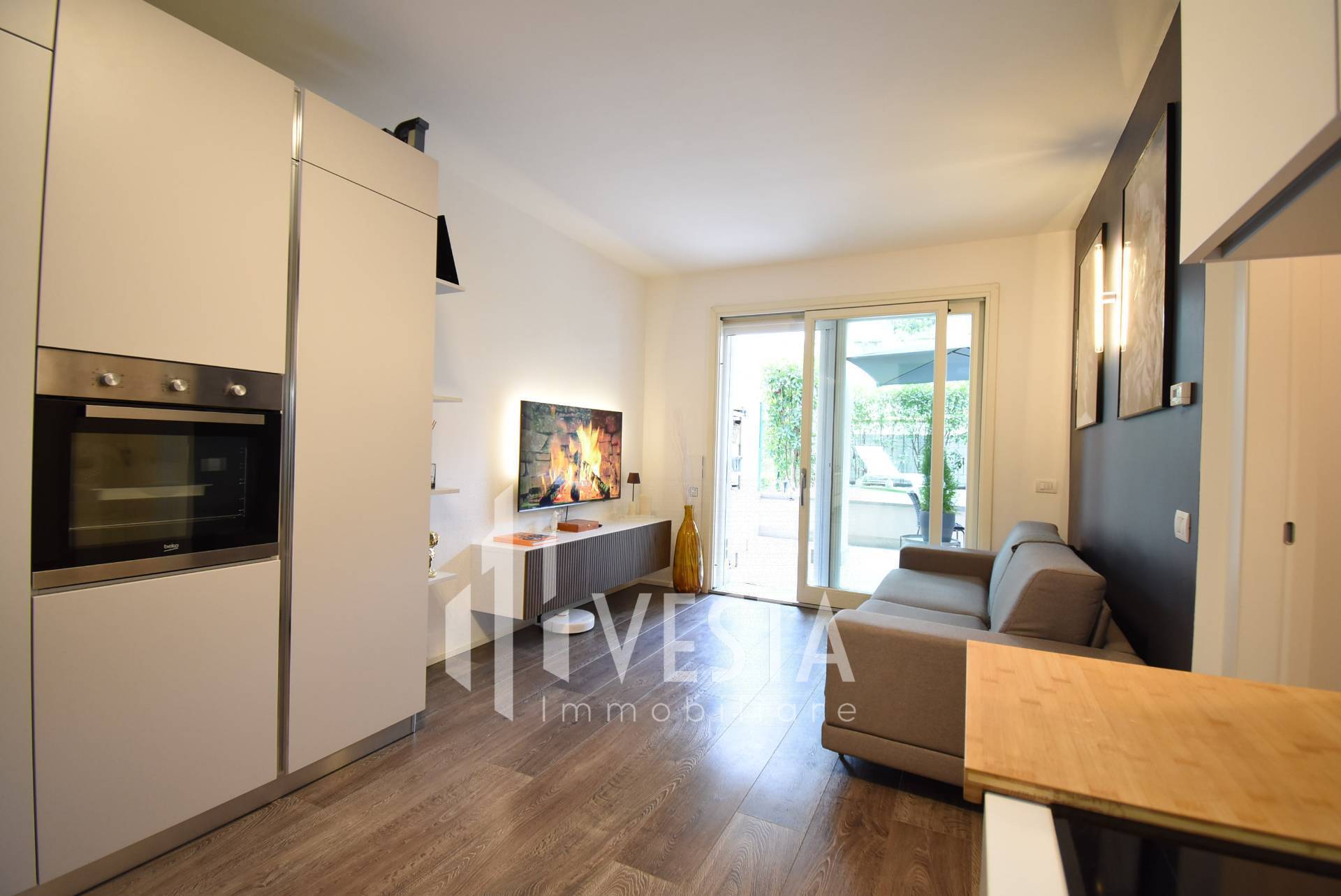 L'ampia e luminosa zona giorno/notte, grazie alla presenza di un grande finestrone scorrevole, si affaccia direttamente sul giardino privato, un'oasi di pace e tranquillit dove potrai godere del verde circostante.