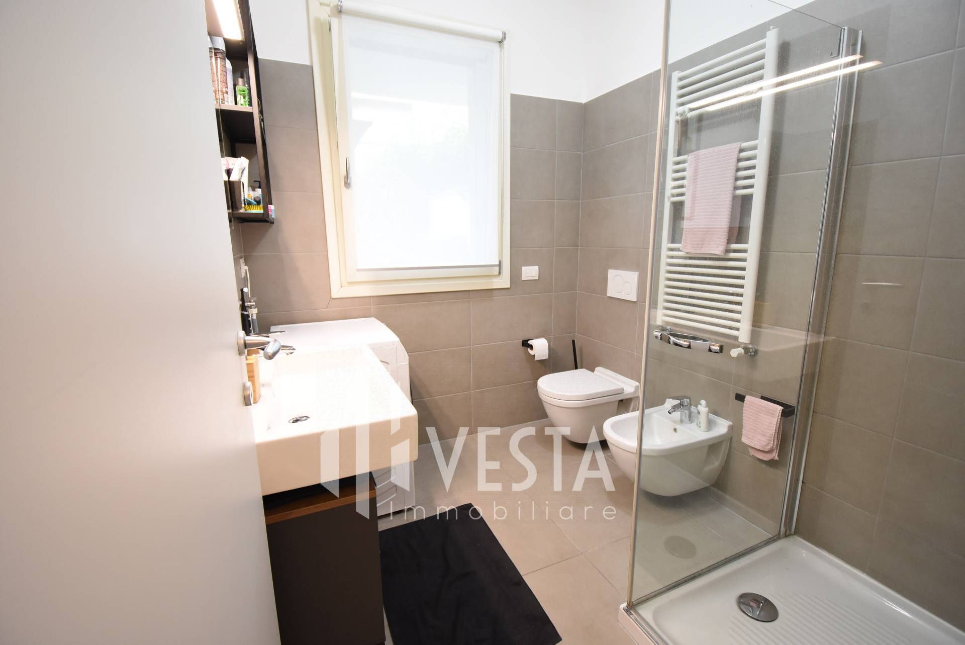 Il bagno, moderno e funzionale, dotato di doccia e tutti i comfort necessari.