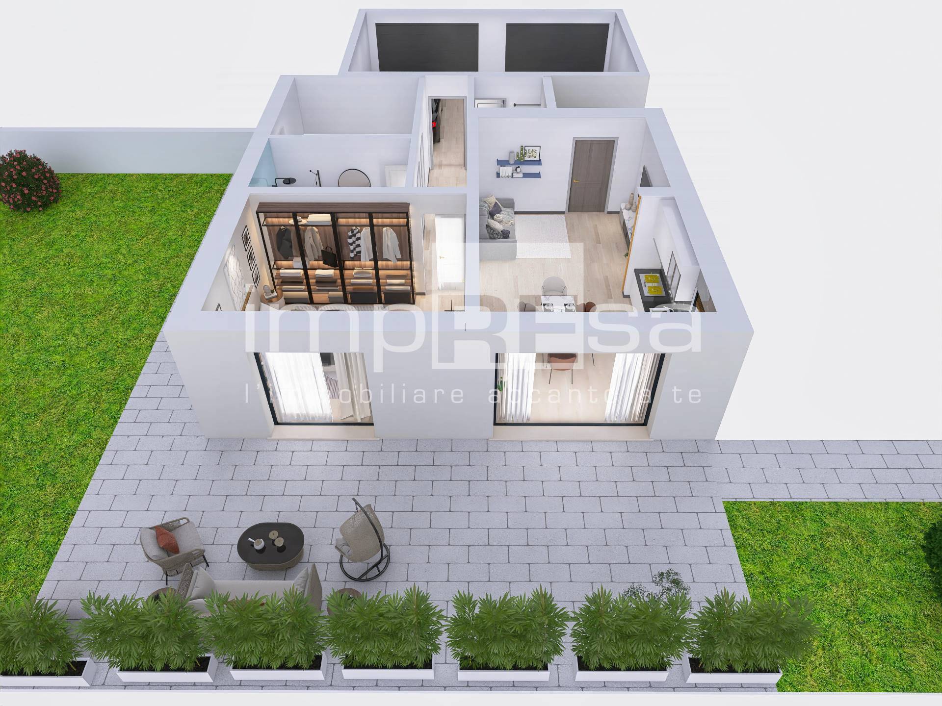 Le 3 unit immobiliari, ciascuna di mq. netti 75, sono cos composti: ° zona giorno open space con soggiorno e cucina a vista di mq. 32, con accesso diretto al giardino di mq. 200 circa privato oppure terrazzo di mq. 40 esposto a Sud ° camera matrimoniale di mq. 16 ° camera singola di mq. 9,50 ° bagno finestrato ° disimpegno funzionale con secondo WC/lavanderia ° Giardino privato, in parte pavimentato, ideale per momenti di relax, pranzi allaperto e vita allaria aperta.