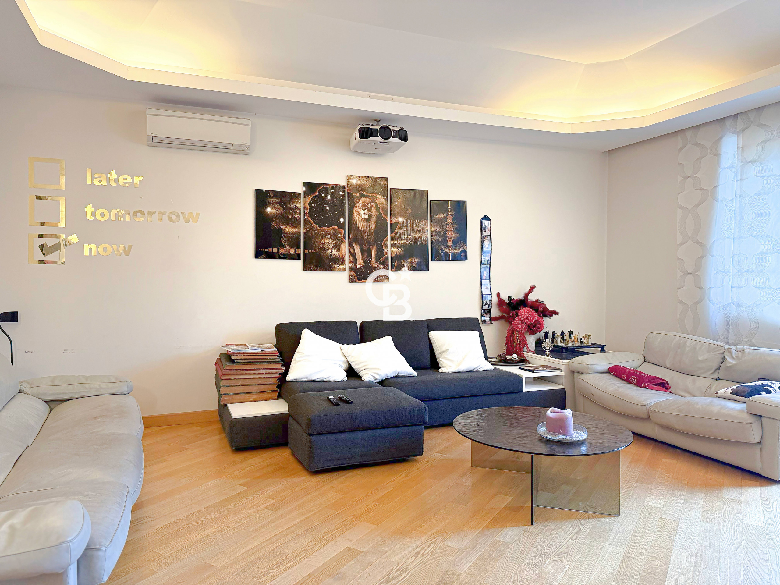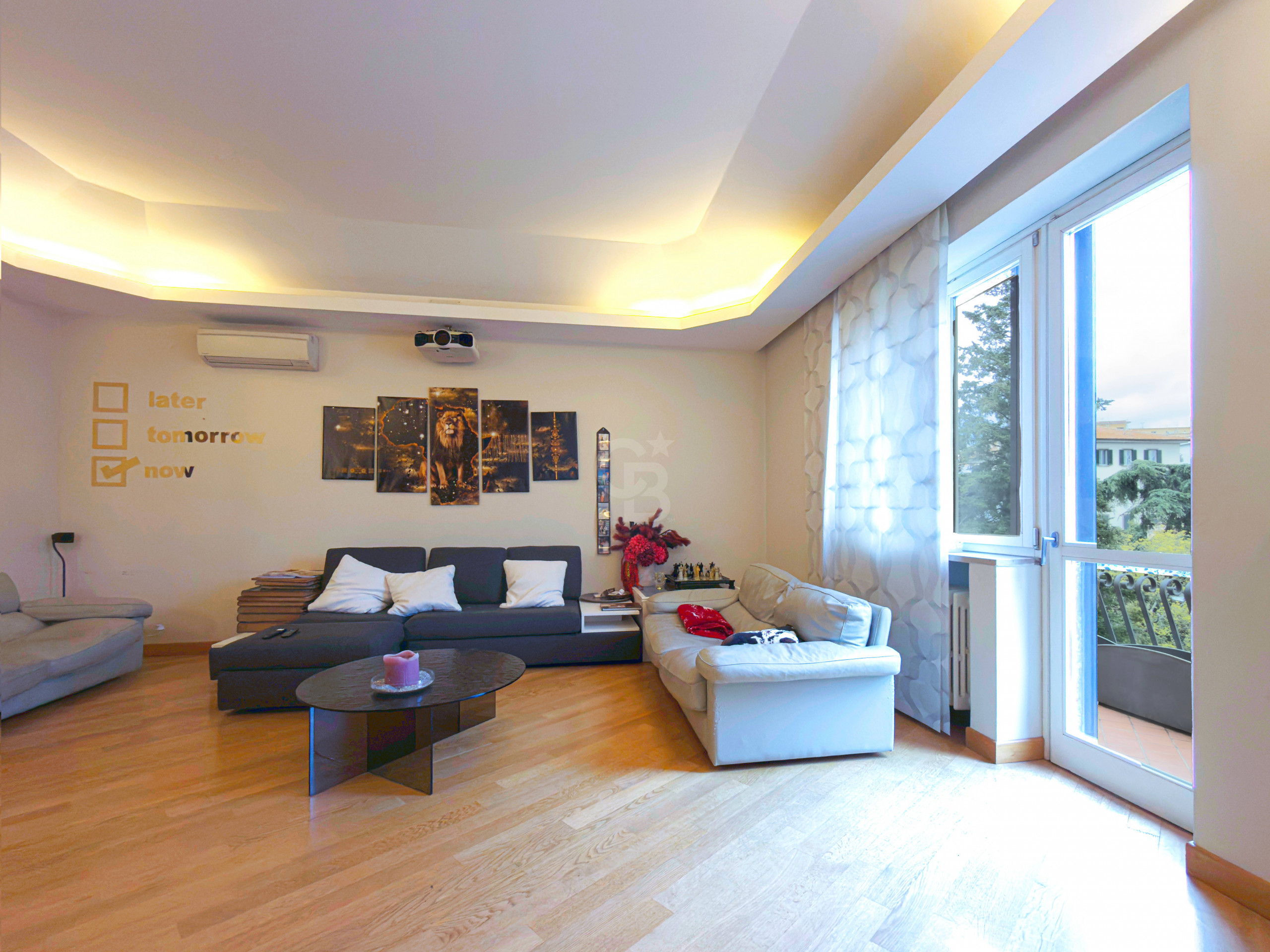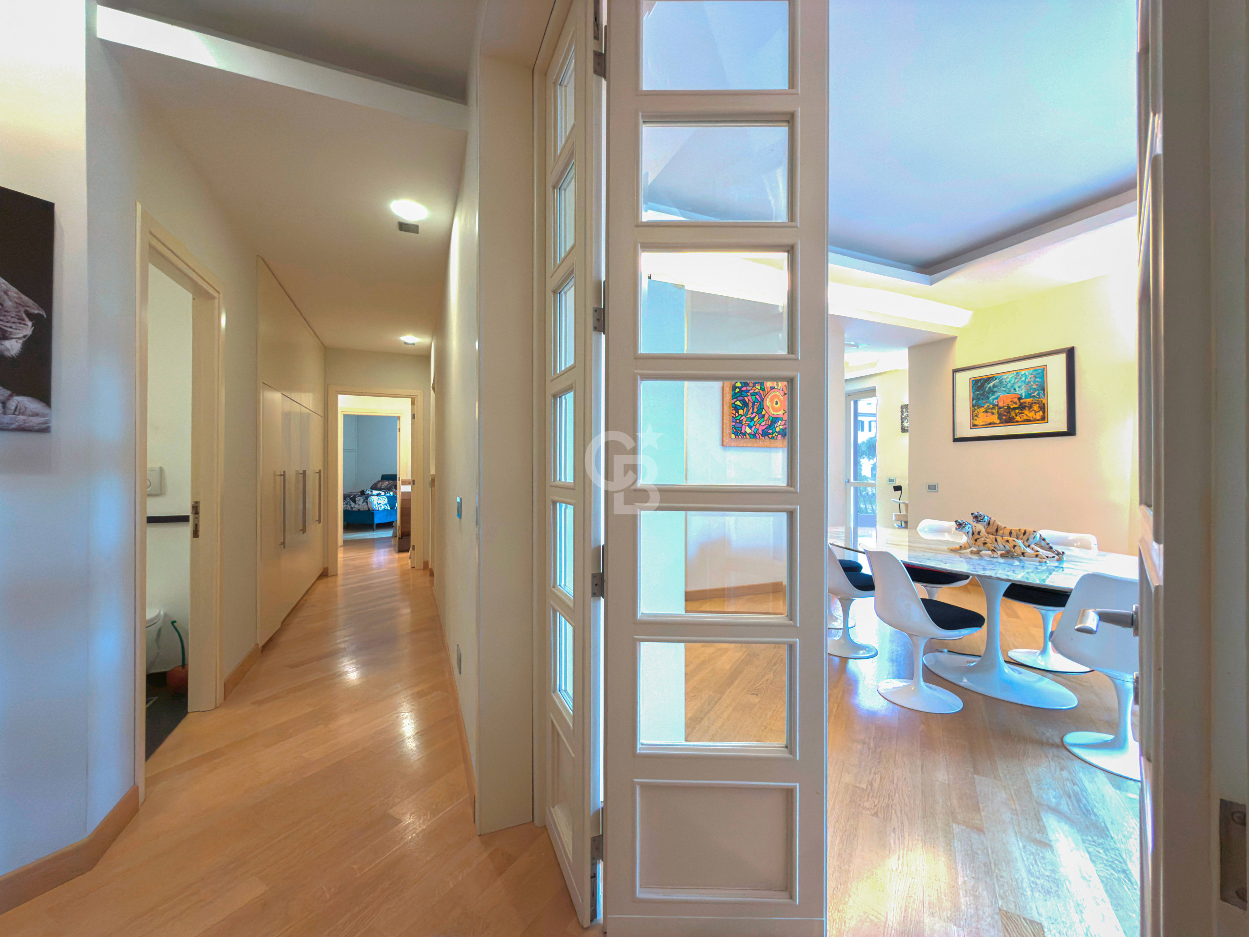 L'appartamento elegante nei dettagli e con i migliori confort ha una metratura di circa 250 mq. Al suo ingresso troviamo uno spazioso studio che gode di un balcone, una cucina abitabile, un salone diviso in zona pranzo e zona relax, collegati da un ampio balcone di circa 15 mq che conduce alla cucina; la zona notte distribuita in due ale separate si compone di un totale di quattro camere matrimoniali, tre bagni, una zona guardaroba ed un ulteriore balcone di circa 15 mq, garantendo comunque zone private.