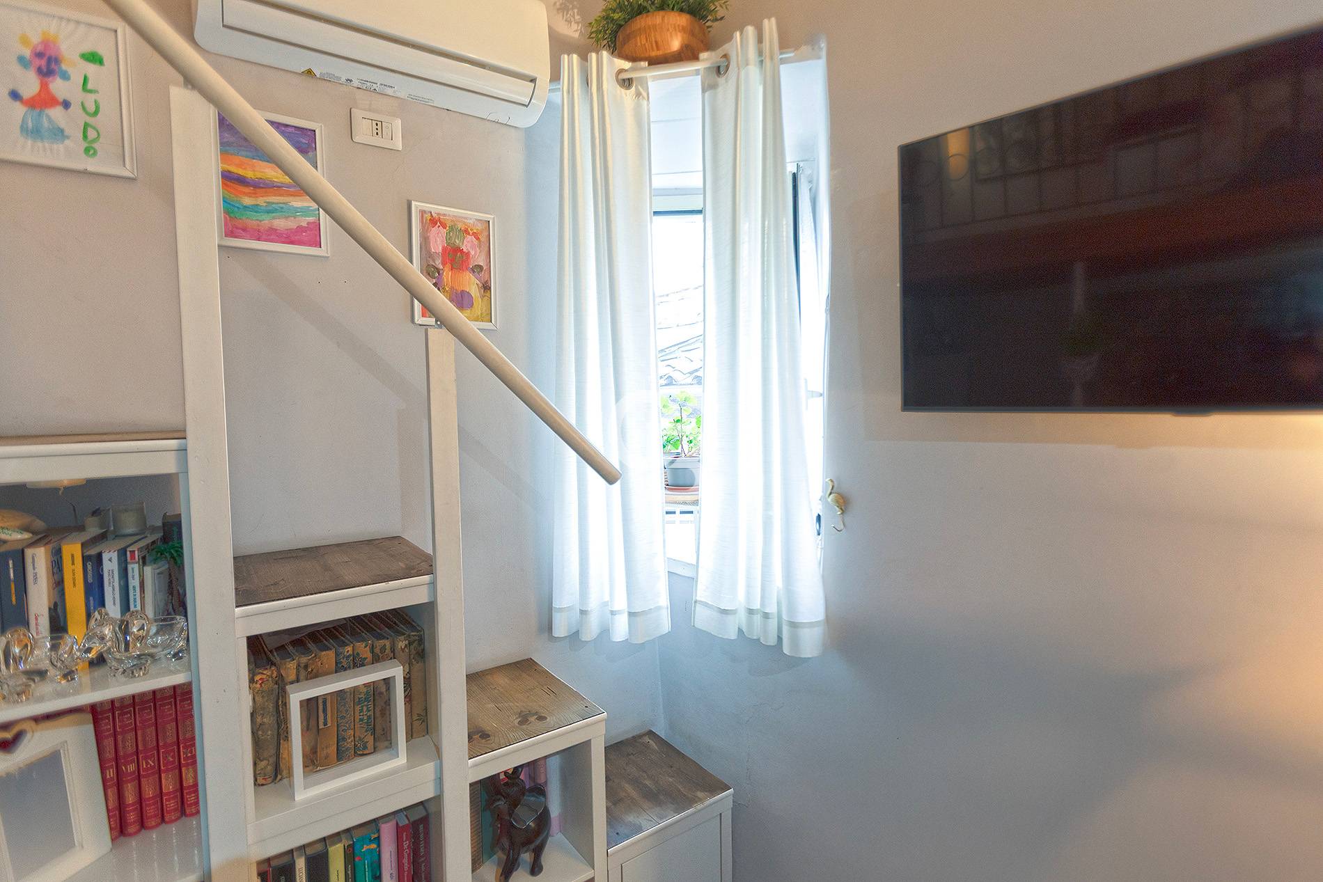 Lampia zona living composta dallangolo cottura a vista ed un soppalco dove stata realizzata la zona notte.