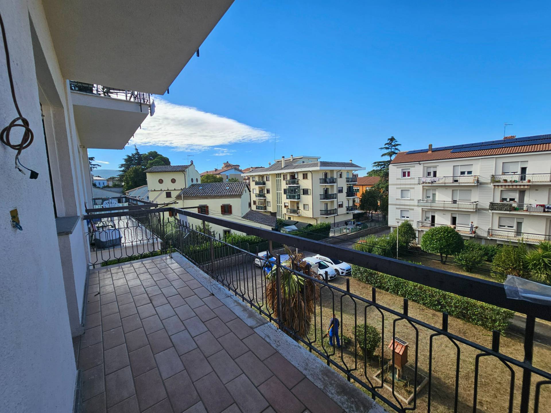 All'ingresso si trova il luminoso soggiorno con balcone abitabile, ideale per accogliere ospiti o per momenti di relax in famiglia.