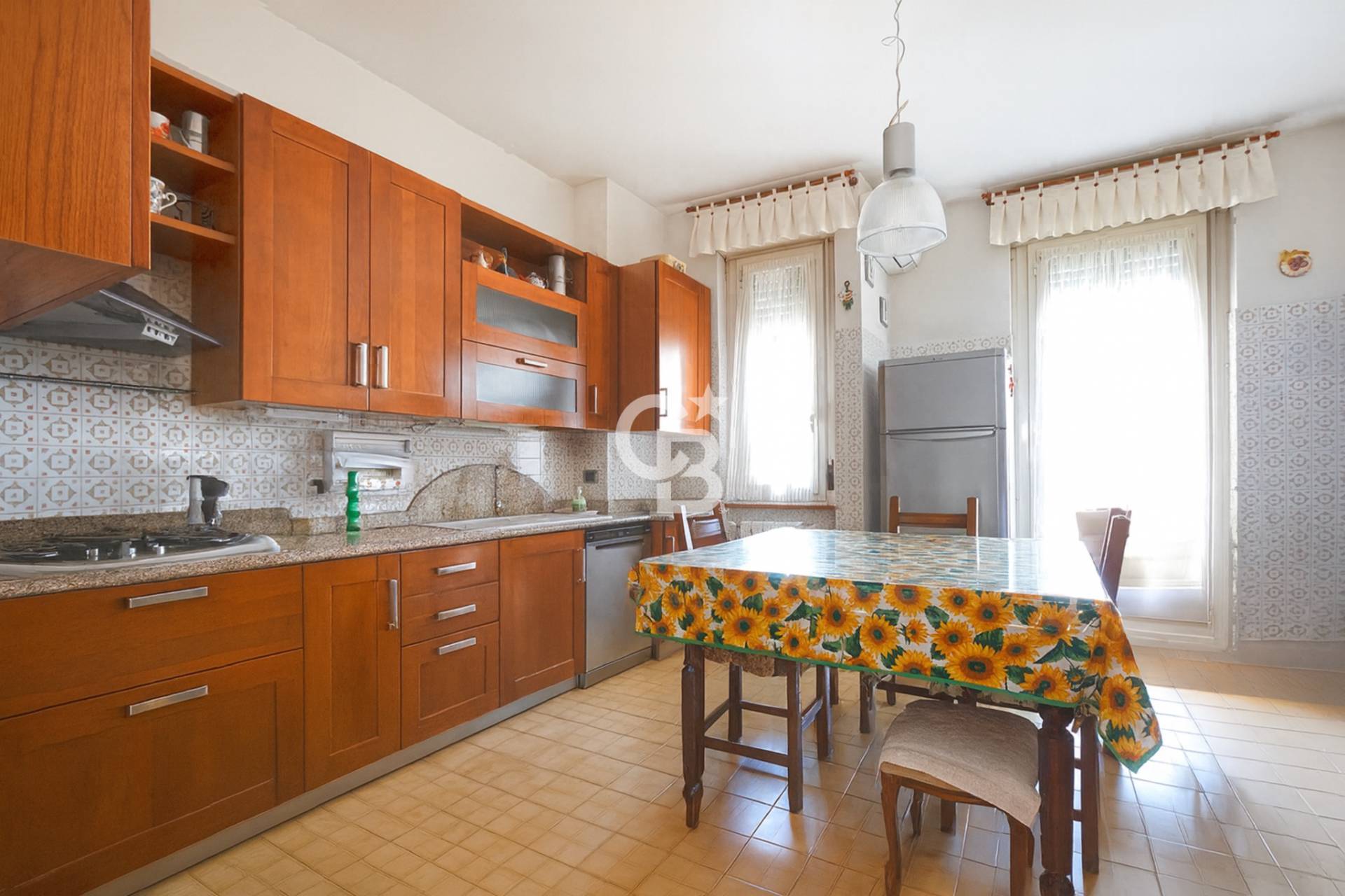 La cucina abitabile, anch'essa con affaccio sul secondo balcone.