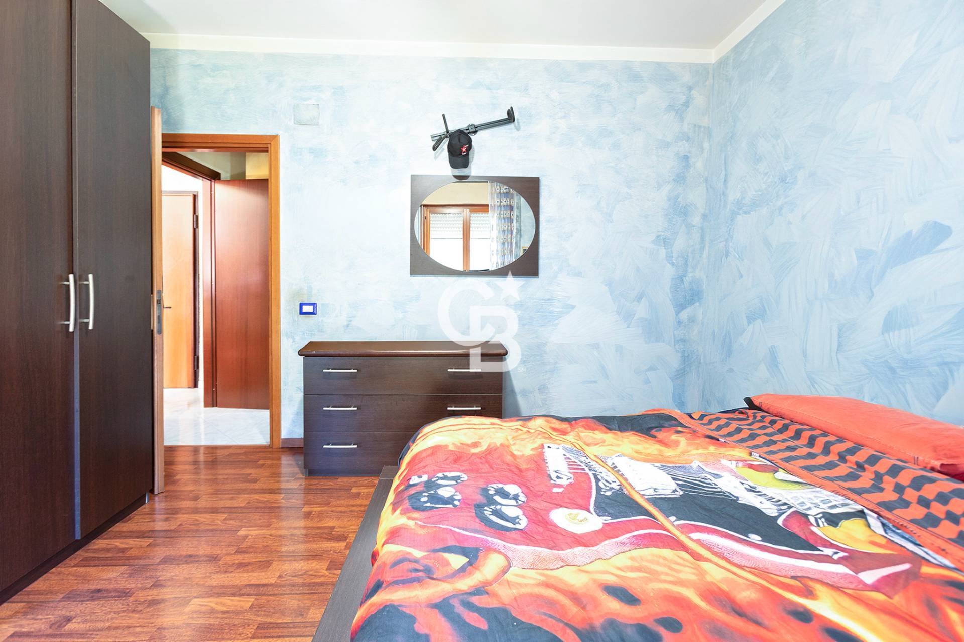 Un disimpegno conduce alla camera matrimoniale, di ottime dimensioni, e al bagno, funzionale e ben distribuito.