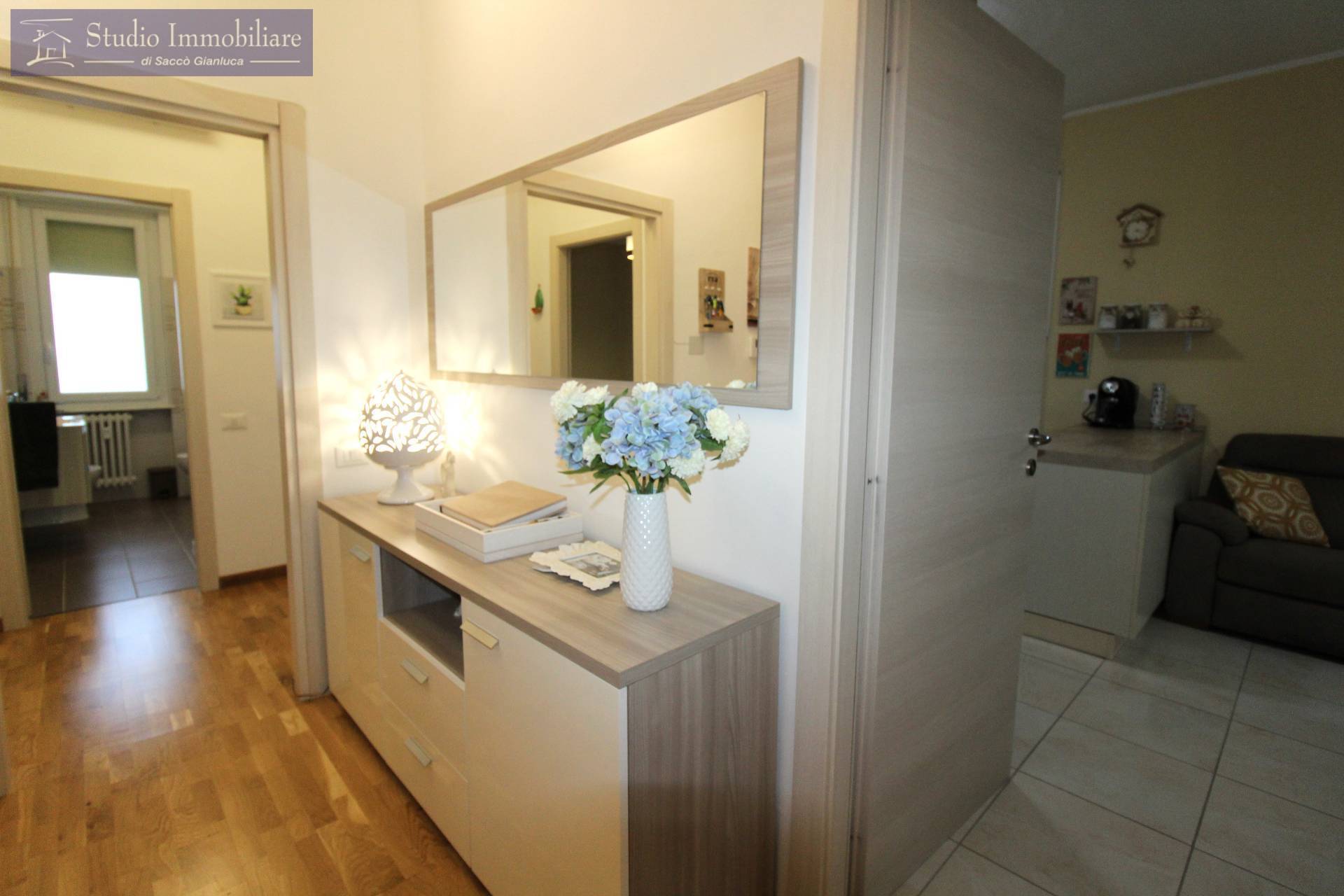 Appartamento trilocale ristrutturato nel 2020 in vendita a Voghera centro, sito al piano secondo con ascensore, composto da ingresso, soggiorno e cucina a vista, disimpegno, bagno, due camere matrimoniali con accesso al balcone, ripostiglio e cantina.