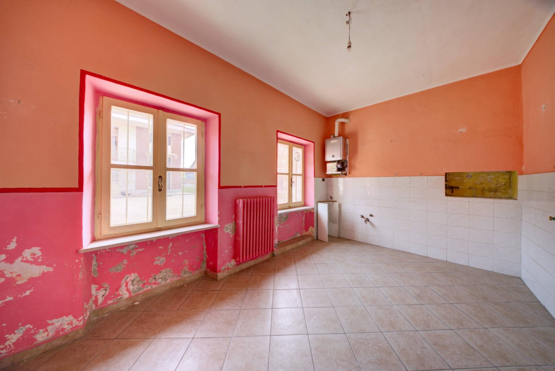L'immobile, da ristrutturare, composto da ingresso, disimpegno, due ampi locali che possono essere adibiti a zona giorno e cucina, quattro camere da letto , due bagni con finestra e locale di deposito.