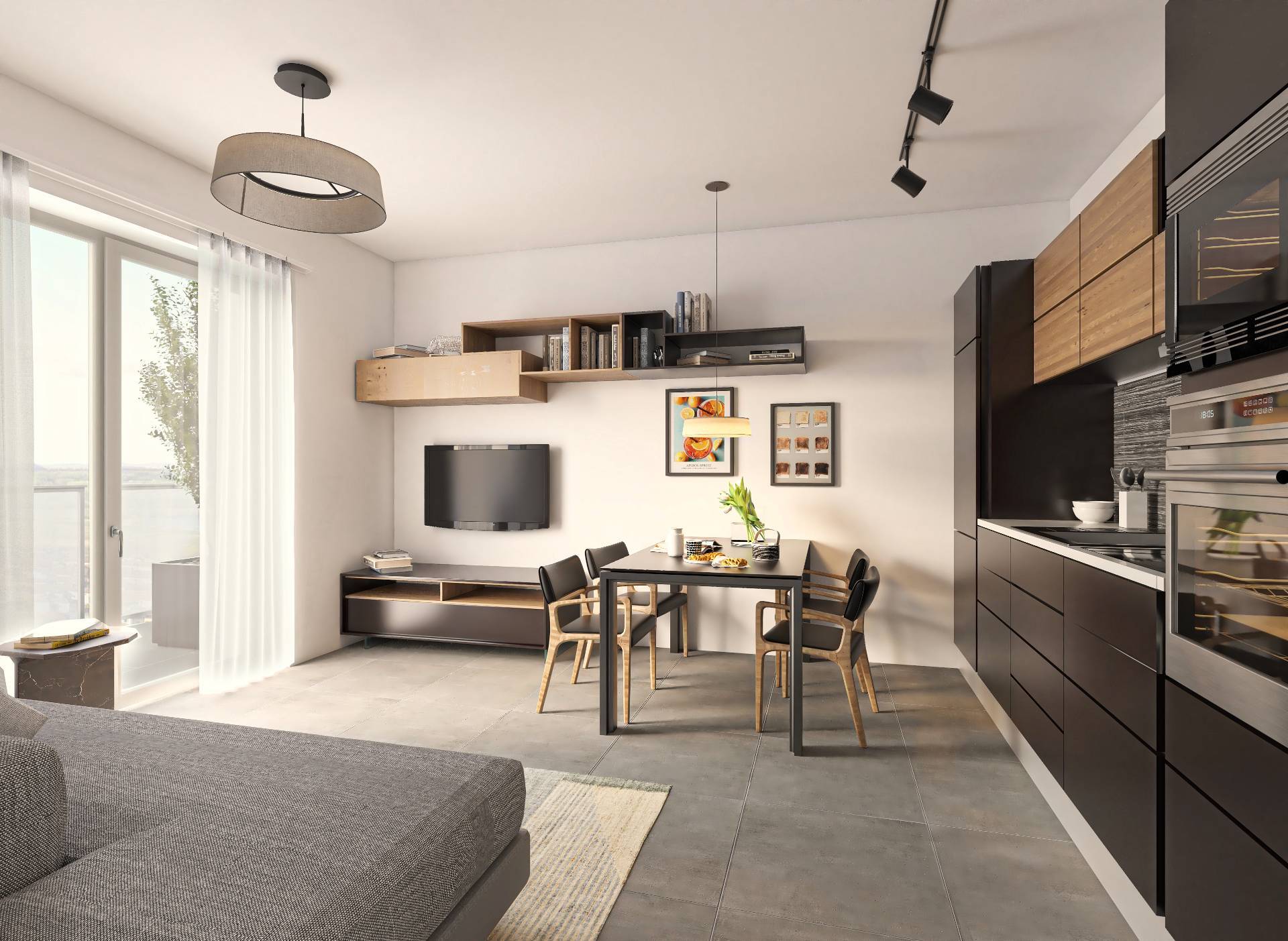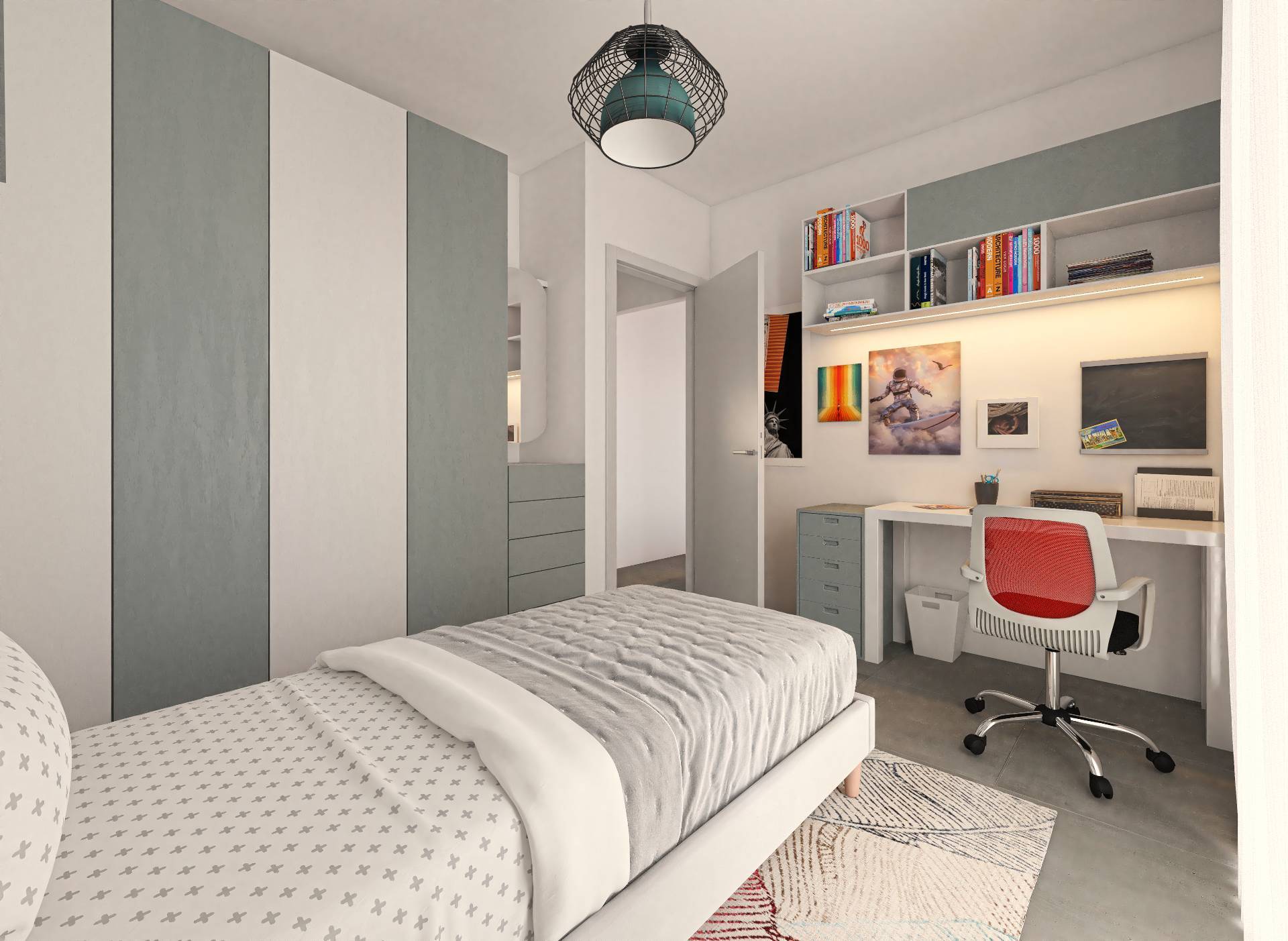 Limmobile composto da ingresso su disimpegno, zona living con cucina a vista, due camere da letto di cui una matrimoniale, un bagno, zona lavanderia, un terrazzo e un balcone.