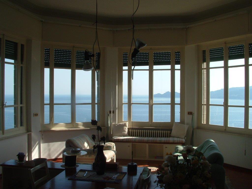 In contesto incantevole, affacciato sul mare e con la vista panoramica da Rapallo a Portofino, vendesi attico su due livelli in villa immersa in un ampio giardino che arriva fino al mare. Il parco che circonda la villa ha una piscina panoramica coperta funzionante tutto l'anno, un ascensore vetrato per la discesa al mare ed il parcheggio privato.