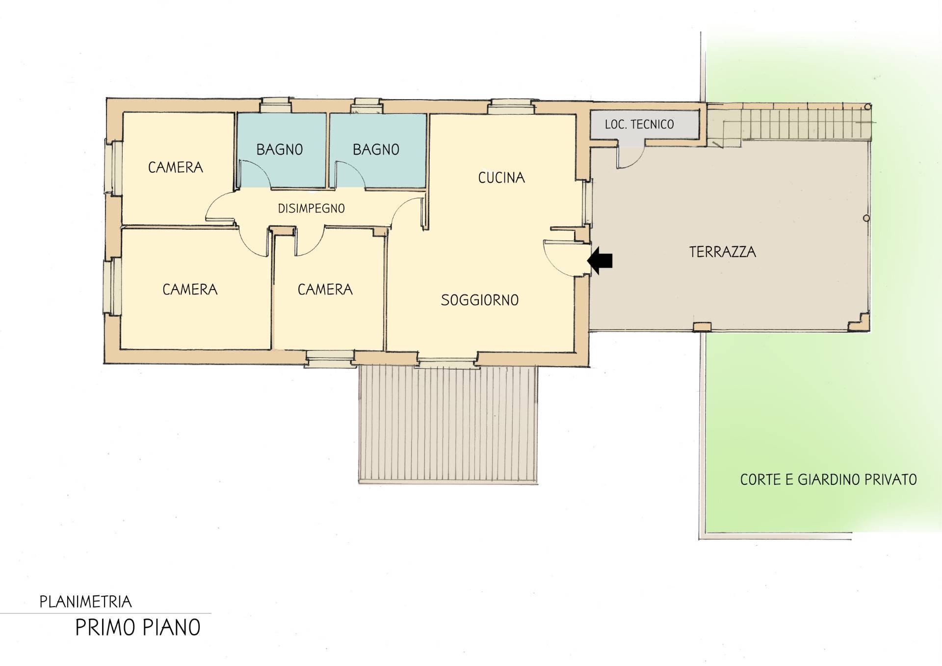 Al piano terra, un giardino privato e un box auto completano la propriet spazi dove respirare, coltivare il verde o godersi un tramonto destate.