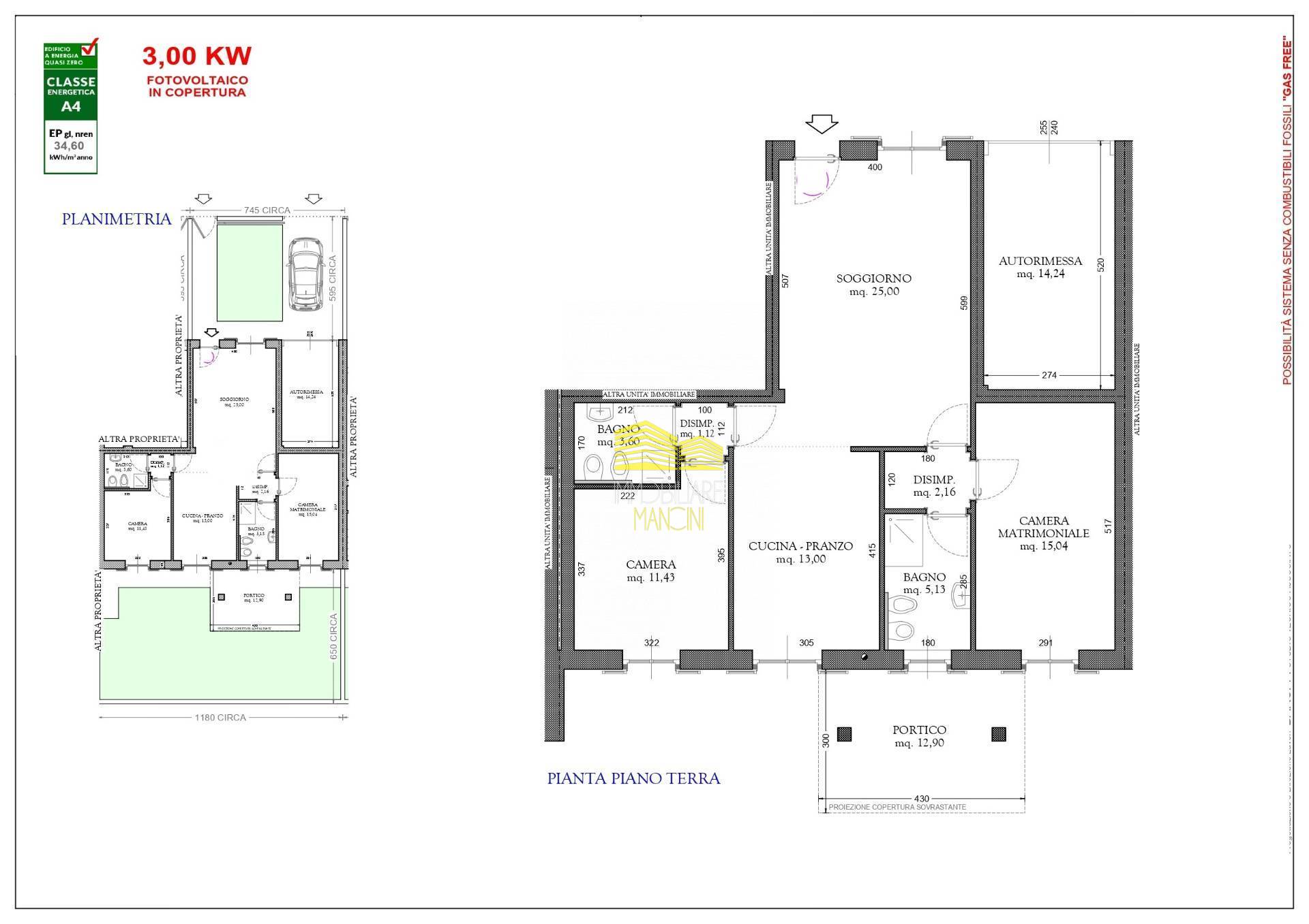 Accessoriata di impianto fotovoltaico ampliabile, pompa di calore gi fornita con predisposizione climatizzazione estiva, riscaldamento a pavimento, predisposizione sistema di allarme.