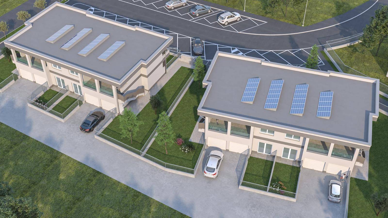 Ogni palazzina sar composta da: 2 appartamenti al piano terra con giardini privati 2 appartamenti al primo piano con balcone, terrazza vivibile e giardino privato Ogni unit sar dotata di: Box allamericana Cucina Snaidero completa di elettrodomestici inclusa nel prezzo Dotazioni tecnologiche e comfort di ultima generazione Classe energetica A Pompa di calore Daikin Pannelli fotovoltaici da 4.4 kW Tapparelle motorizzate Predisposizione per VMC e aria condizionata Unoccasione unica, ideale per chi desidera una casa moderna, efficiente e immersa nella tranquillit.