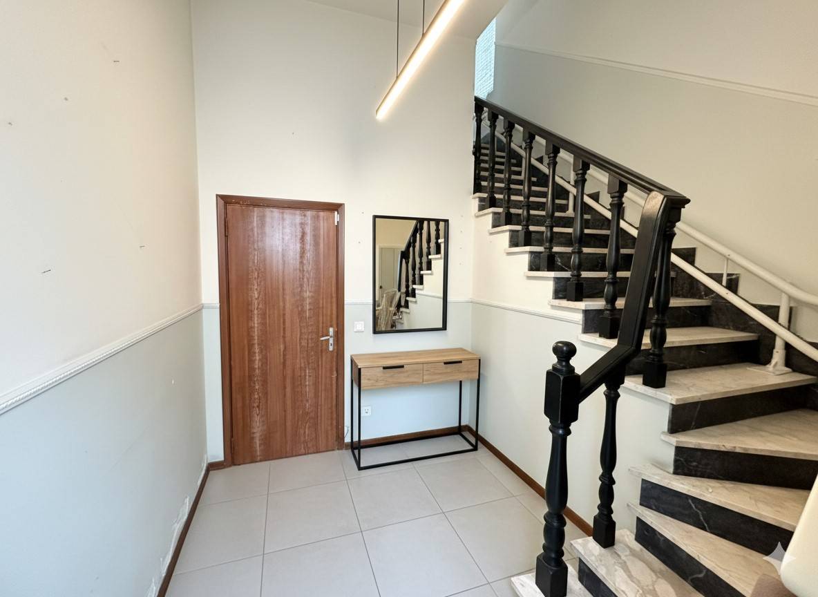 L'abitazione disposta al piano terra con ingresso, disimpegno, ripostiglio, magazzino; al primo piano ampio salone, sala da pranzo con angolo cottura, due camere da letto matrimoniali, studio, terrazzo verandato con predisposizione per una seconda cucina esterna, ampio terrazzo abitabile, bagno finestrato.