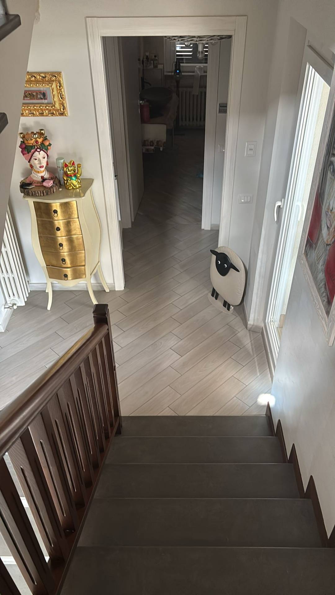 Dotato di corte pavimentata di pertinenza e posto auto esclusivo si compone di: ingresso con qualche scalino che ci conduce al salone con balcone e terrazzo coperto con tettoia in legno di 20 mq, sempre al primo piano abbiamo la zona notte con due camere doppie ed un bagno finestrato, la scala ci conduce al secondo piano con cucina salone dotato di terrazzo e stufa a pellet, bagno e camera.