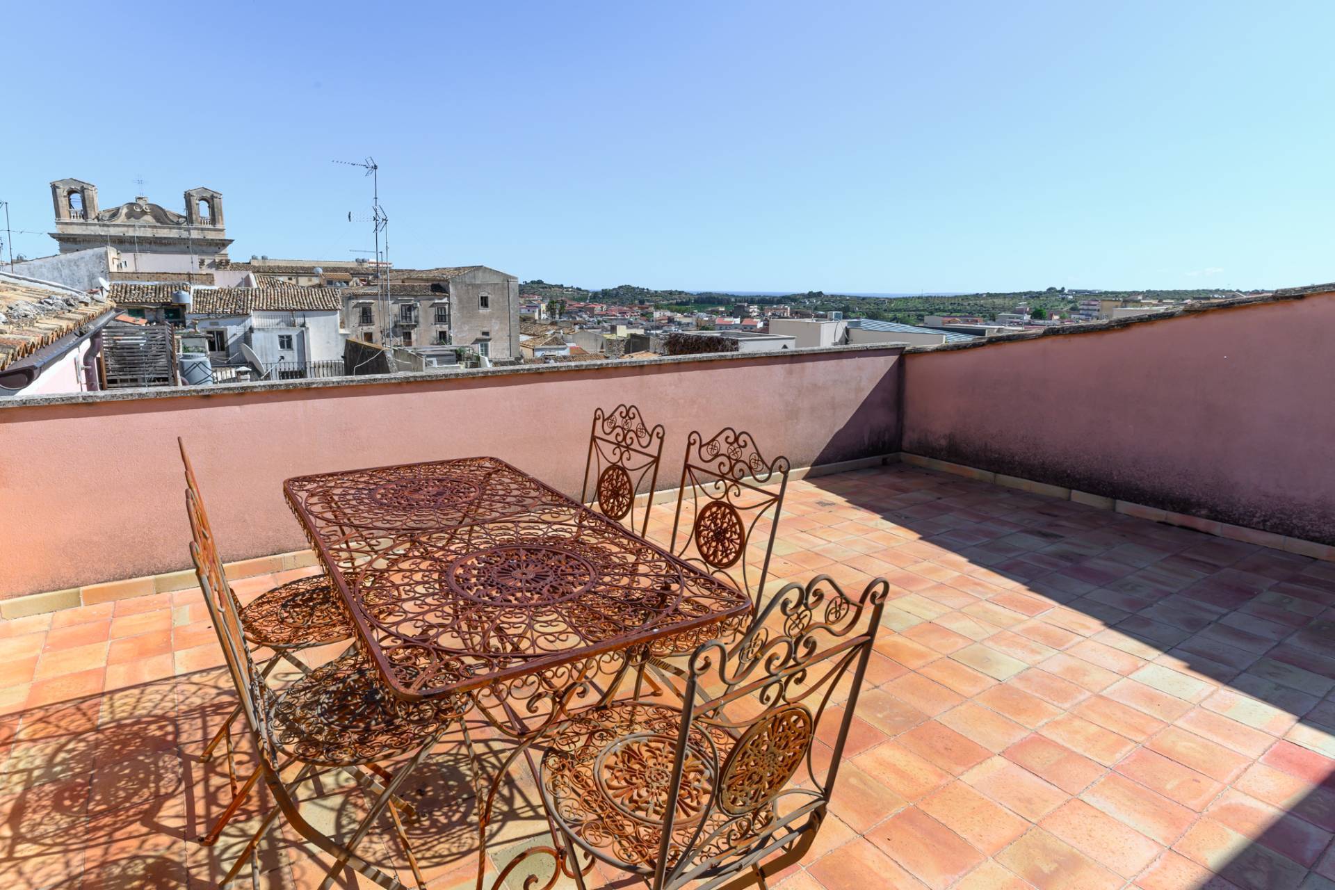 Dal salone, una scala conduce a un delizioso terrazzo panoramico con ripostiglio, da cui si ammira la citt barocca nella sua massima espressione e scorci di vista mare. Lappartamento interamente climatizzato.