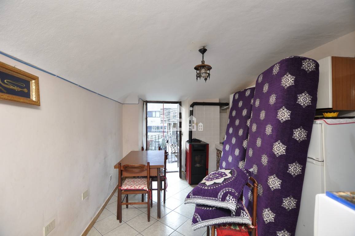 Da un cortile comune si accede nellabitazione, che si sviluppa su due livelli collegati da una scala esterna.