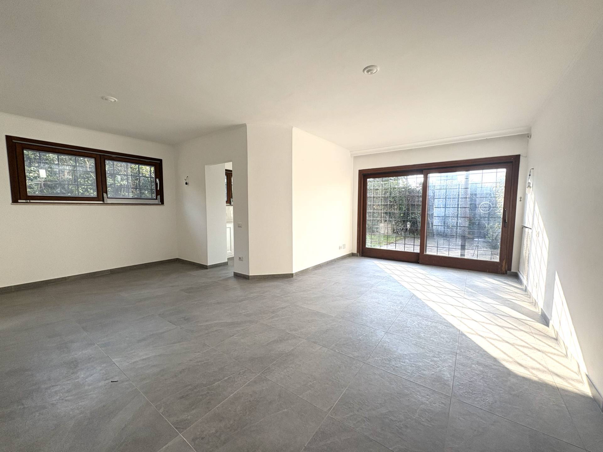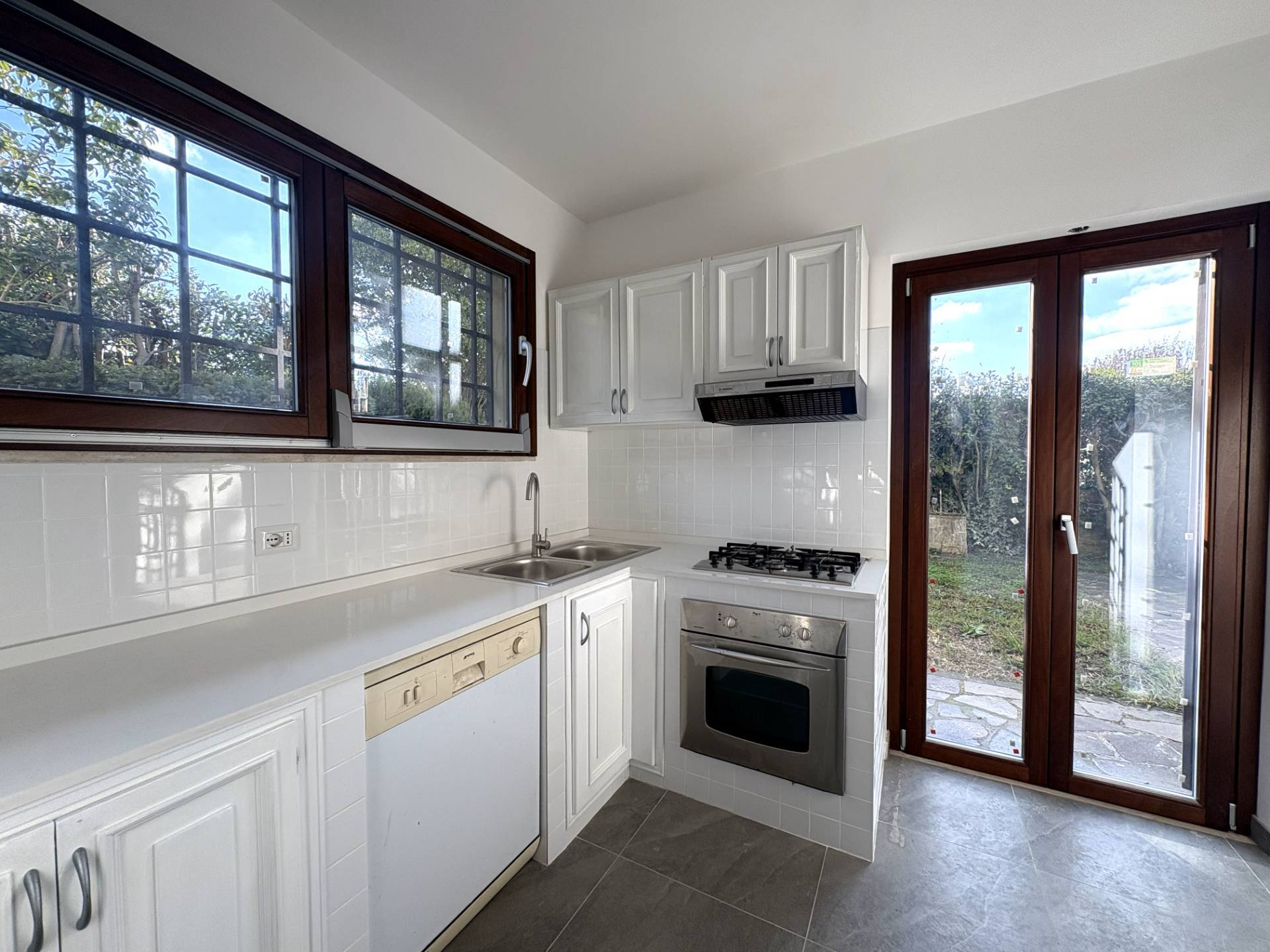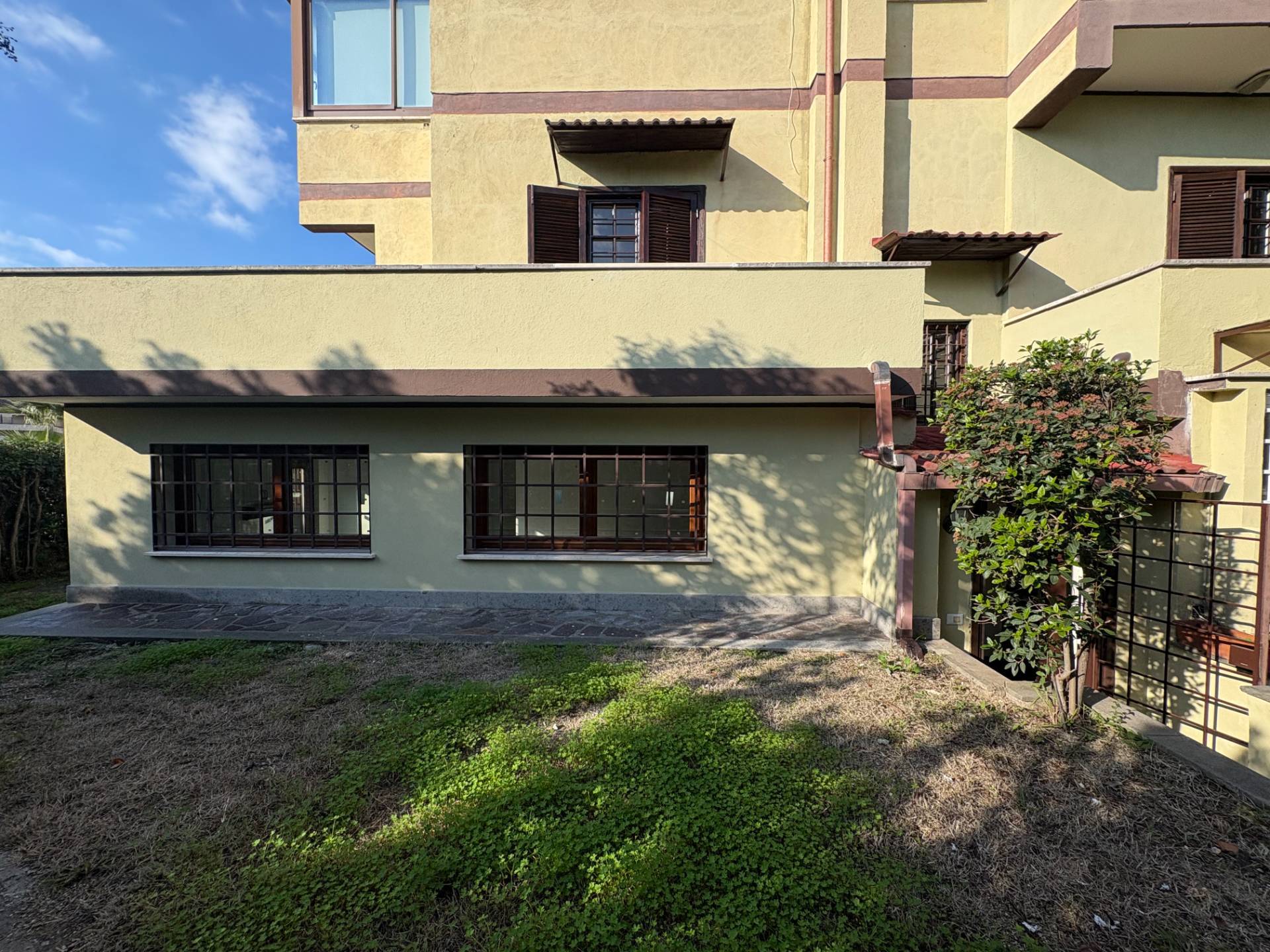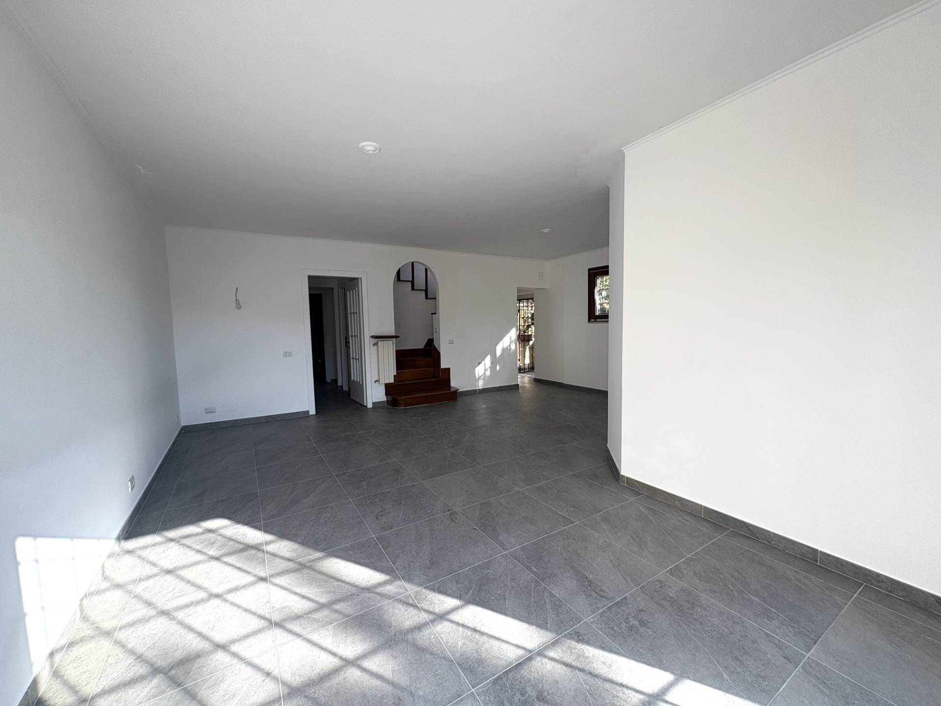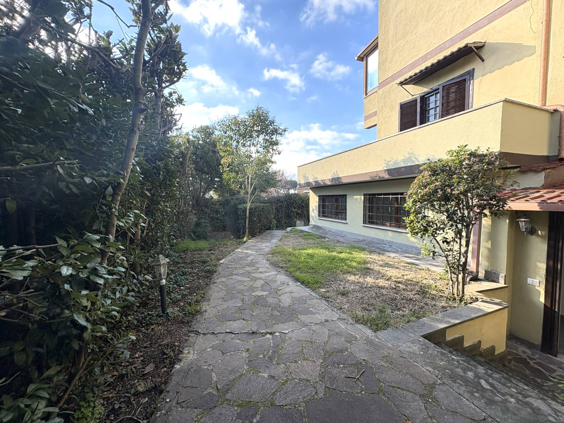 L'appartamento si estende su una superficie totale di 147 metri quadrati, di cui 140 calpestabili ed un giardino di circa 90 mq. Lo stesso cos suddiviso: al piano terra troviamo un salone doppio attiguo alla cucina abitabile parzialmente arredata, perfetta per le cene in famiglia e per chi ama cucinare, entrambi con porte finestre che escono sul giardino, un bagno, un studio ed il box auto di cca 26 mq, al primo piano troviamo un disimpegno, 3 camere da letto, 2 bagni di cui uno cieco, 2 ripostigli, un balcone ed un terrazzo.