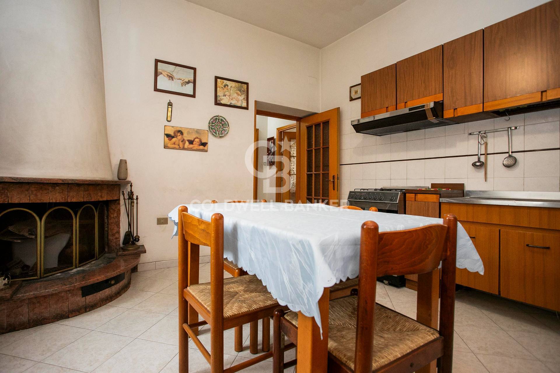 La disposizione interna accogliente e funzionale: lingresso apre su una cucina abitabile impreziosita da un camino, con un pratico ripostiglio finestrato; a seguire il soggiorno, luminoso e ben proporzionato.