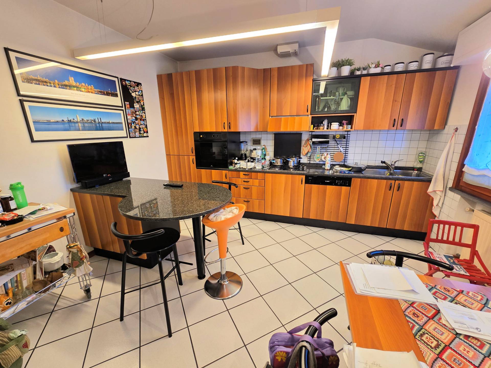 Lappartamento si raggiunge da resede privato con una scala esterna aperta, allinterno composto da ingresso, ampia cucina/pranzo, soggiorno molto luminoso con camino ed accesso ad un terrazzo disposto su due lati della casa, disimpegno zona notte dove trovano spazio tre camere, due bagni e un ripostiglio.