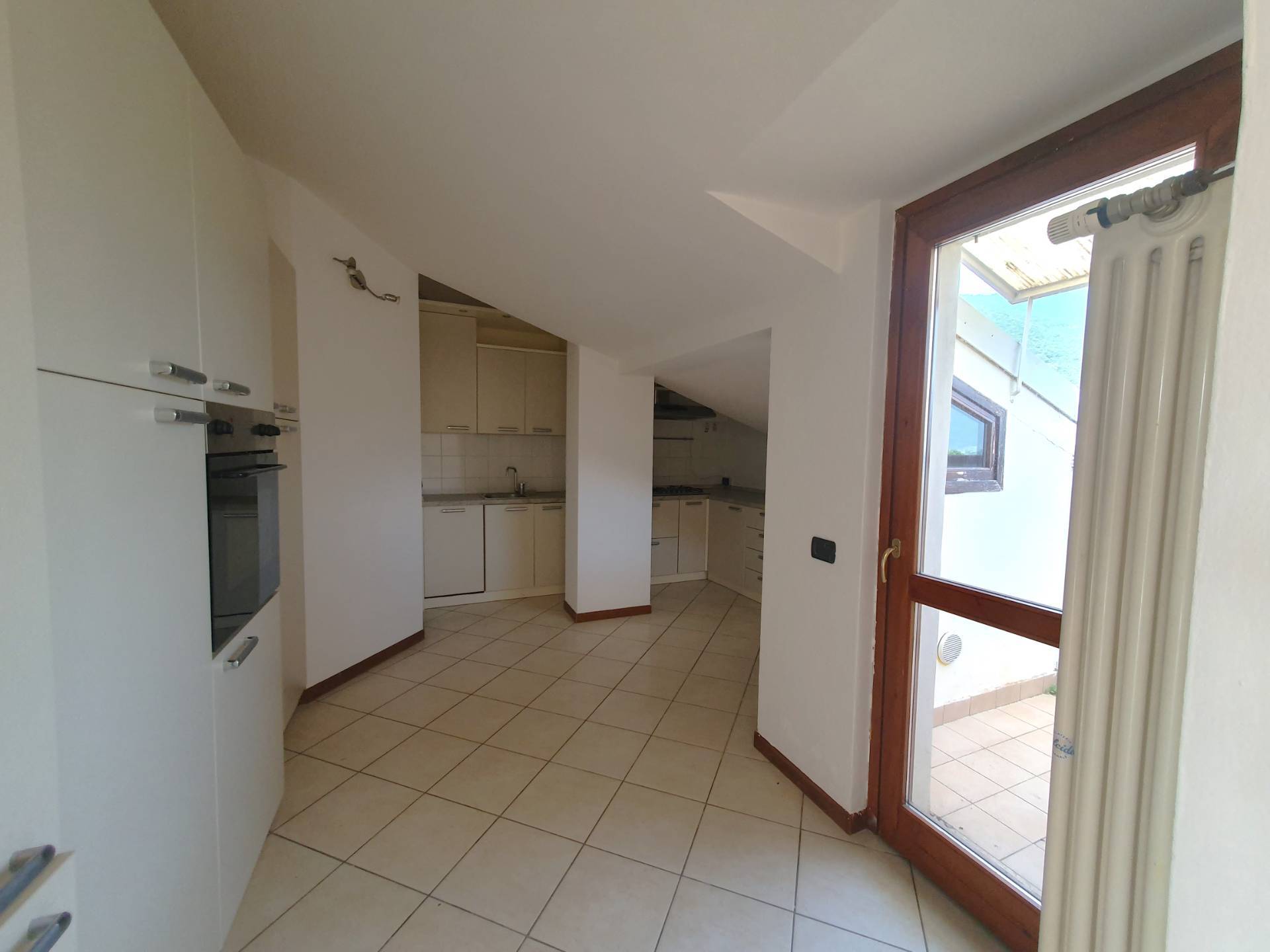 L'ingresso dell'appartamento caratterizzato da una luminosa zona living con accesso diretto all'ampia terrazza a tasca esposta ottimamente e ben soleggiata; proseguendo troviamo la cucina abitabile separata da un caratteristico arco e con doppio accesso sul terrazzino.