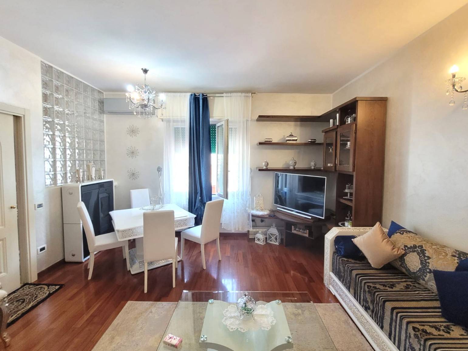 Lingresso si apre su una luminosa zona giorno, dove il soggiorno offre tutto lo spazio necessario per creare unaccogliente area relax con divani e TV, affiancata da una zona pranzo che si presta perfettamente ad ospitare amici e familiari in un ambiente conviviale.