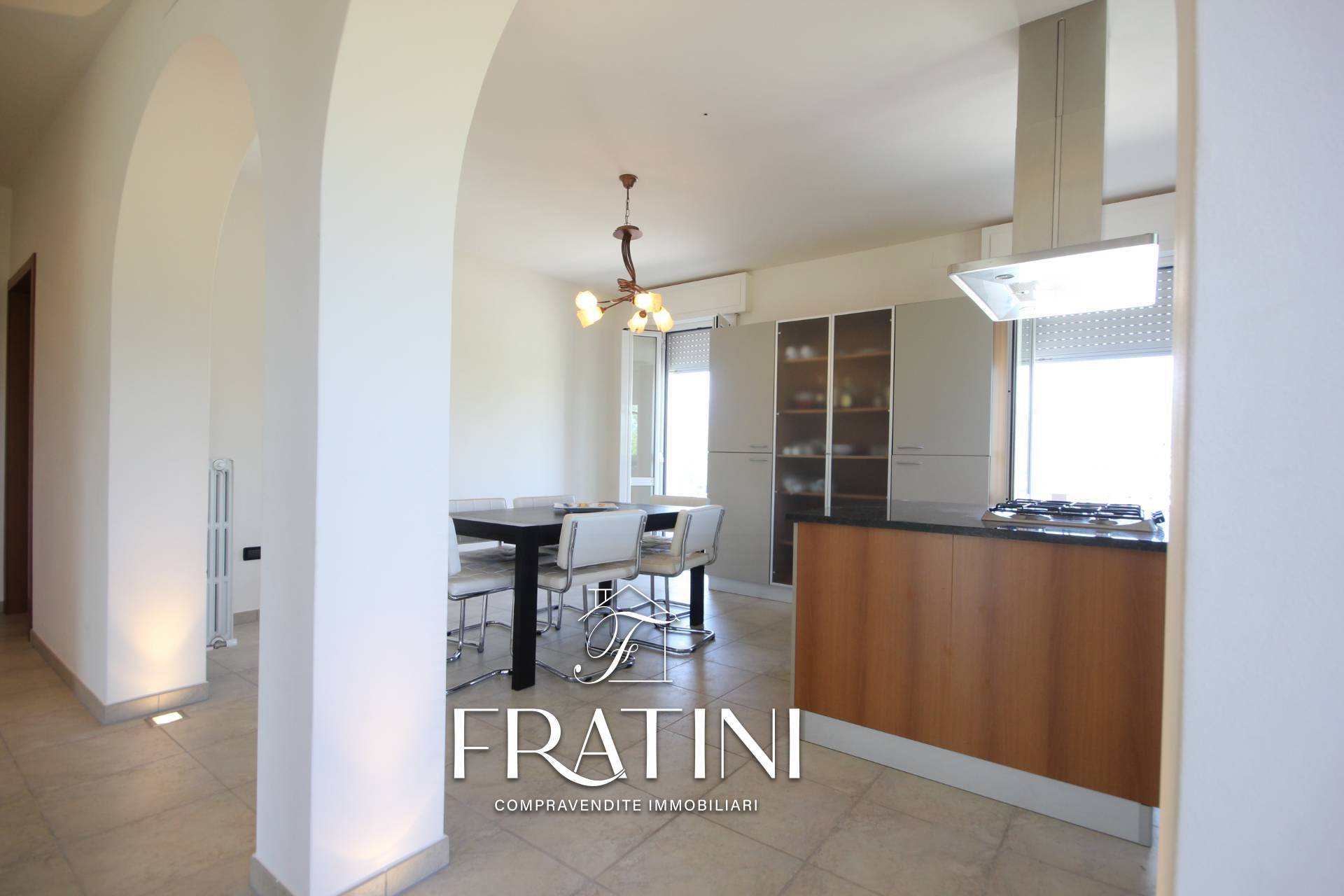 E' cos composto: ingresso su ampio e luminoso open-space dove troviamo un soggiorno con accesso su di una terrazza abitabile e reparto cucina abitabile con accesso su un balcone panoramico.