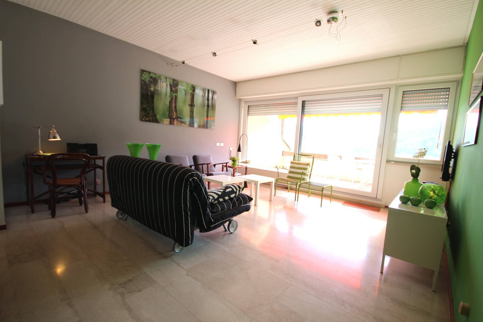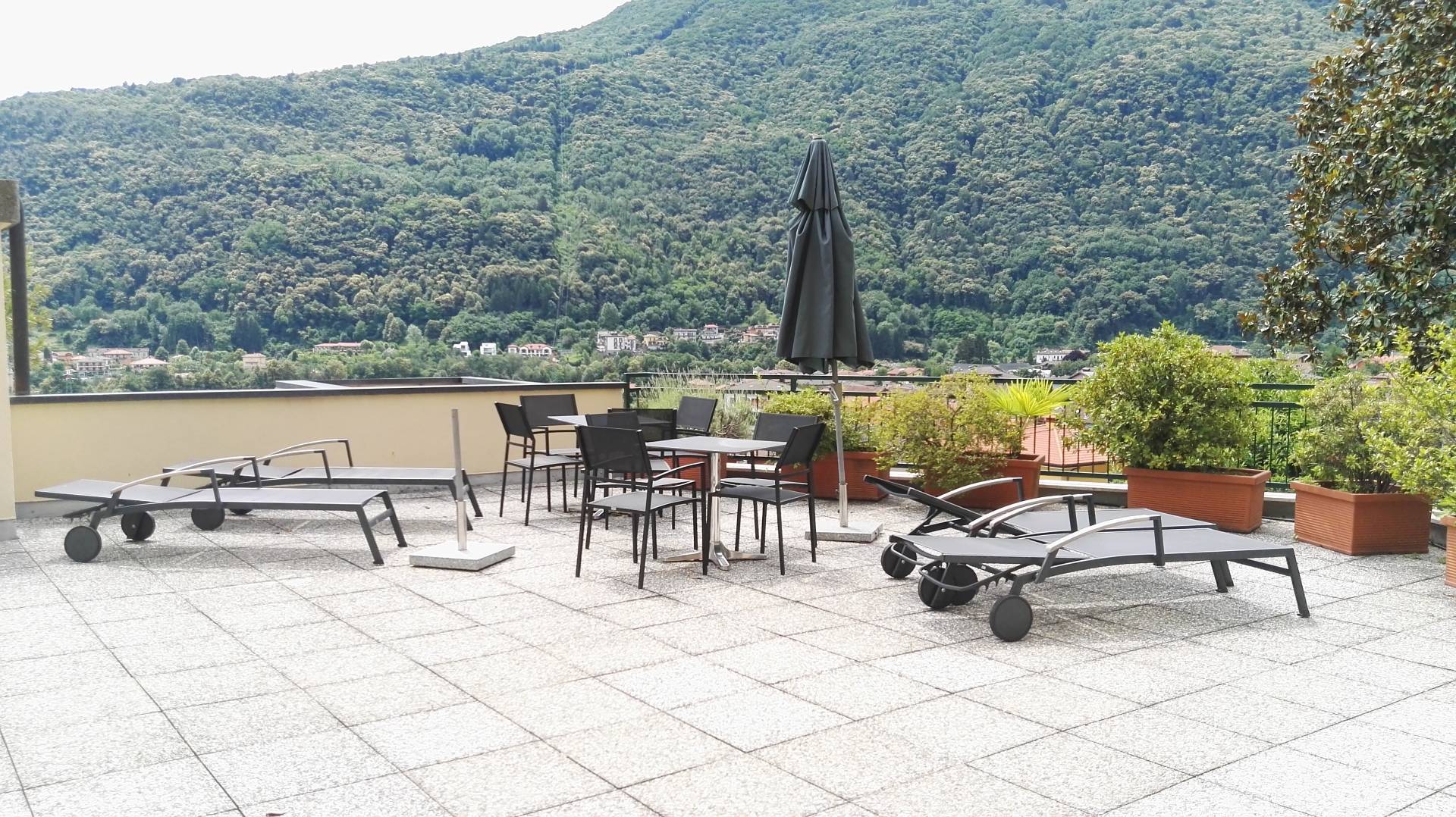 APPARTAMENTO CON PISCINA, TERRAZZA VISTA LAGO E POSTO AUTO. Questo moderno e luminoso appartamento, con due ampie terrazze e vista lago completa, si trova a Cannobio, nel complesso residenziale La Gerbia, in posizione dominante, tranquilla e soleggiata tutto lanno.