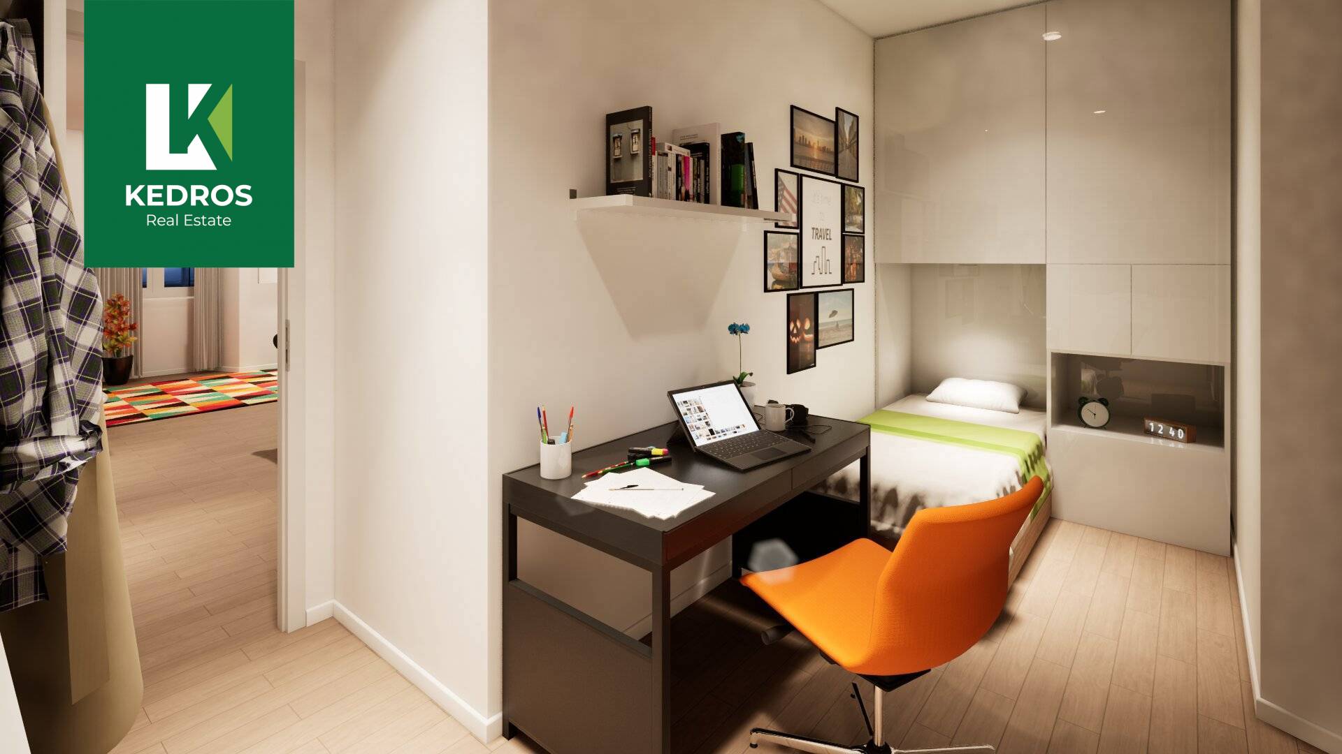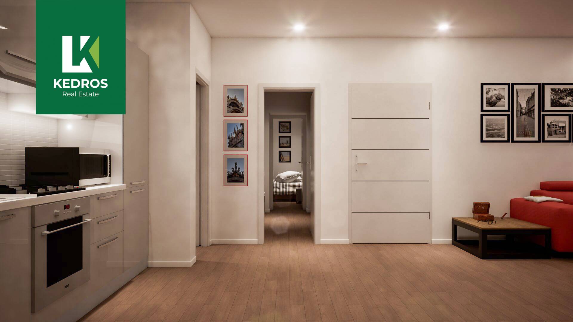 La pianta semplice e funzionale con ingresso direttamente sulla zona living, dove incontriamo soggiorno con angolo cottura, camera singola, disimpegno, bagno con balcone e ampia camera matrimoniale.