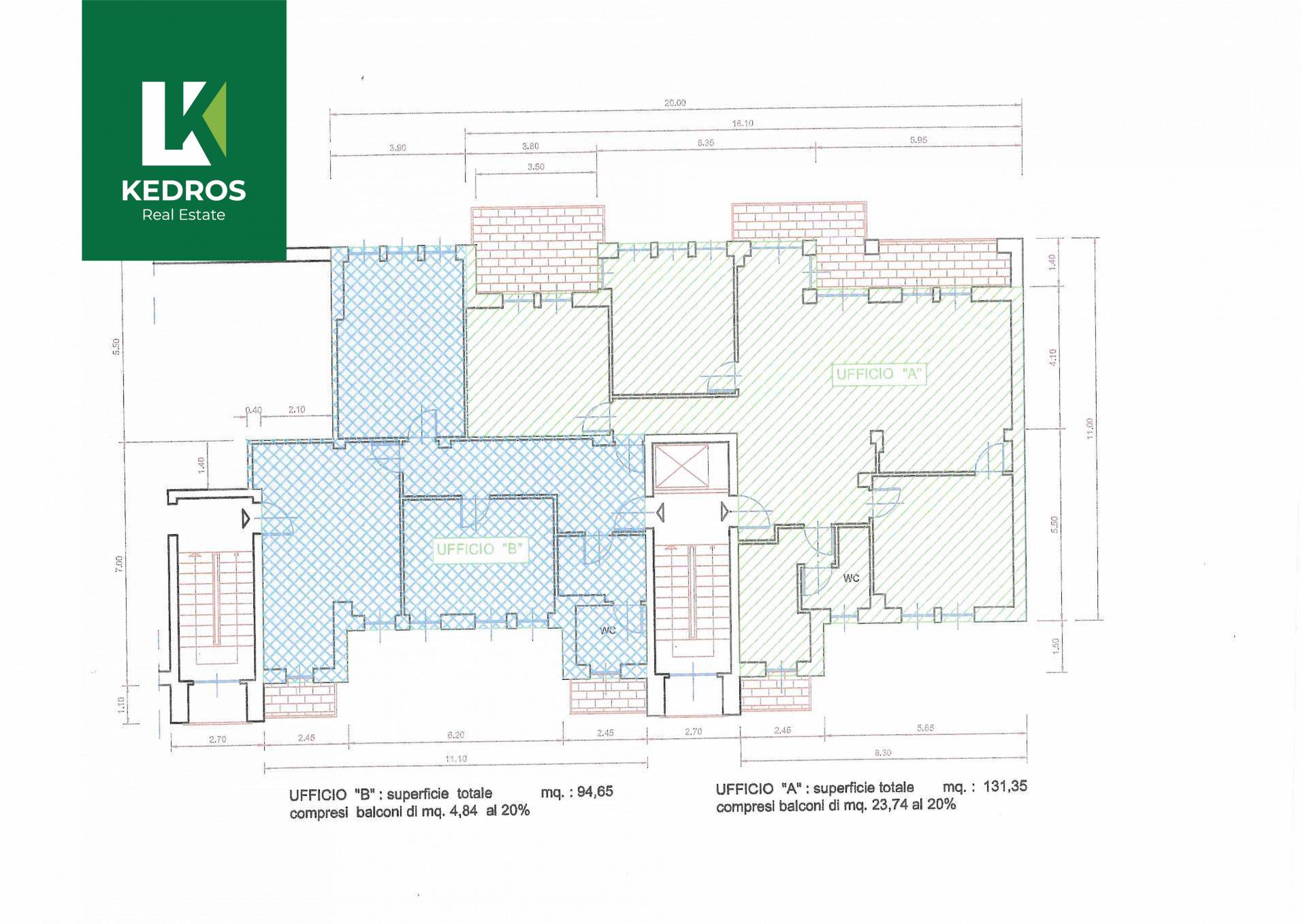 L'unit immobiliare identificata nella planimetria come ufficio "B" con retinatura a quadri di colore blu. Contatta l'inserzionista