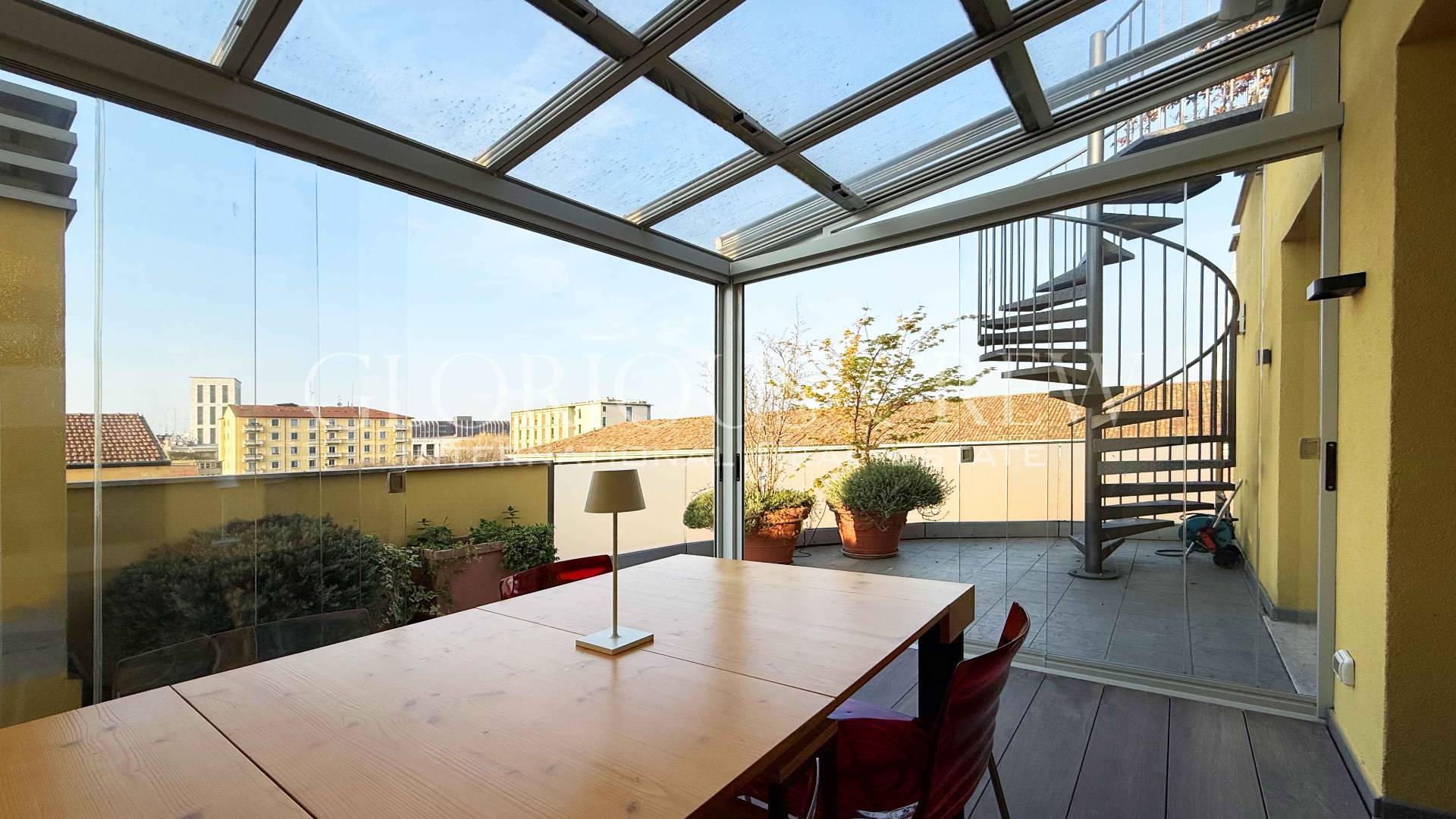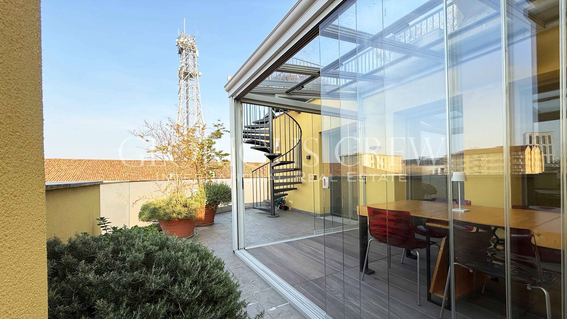 Lattico, in condizioni impeccabili, gode di una straordinaria vista a 360° sulla citt grazie agli ampi spazi esterni: un terrazzo di circa 30 mq al piano e un lastrico solare di 50 mq al settimo livello, per un totale di 80 mq outdoor da vivere in ogni momento della giornata.