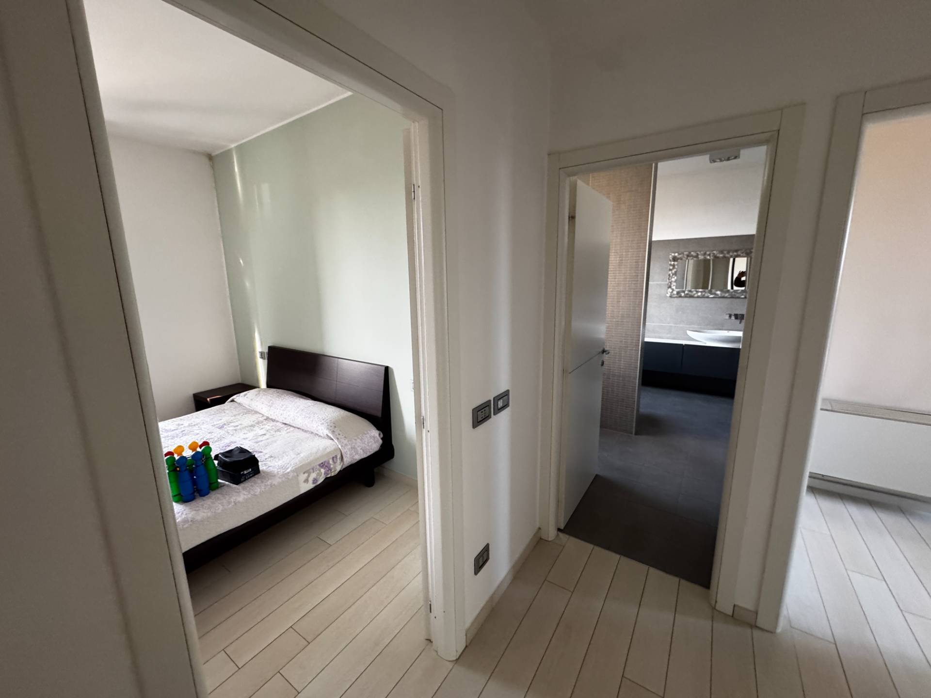Si compone da Ingresso, Soggiorno con Terrazzo e Stanza Jolly/3° Camera, Cucina Abitabile con Terrazzo, disimpegno con Armadiatura, 2 Camere da letto Matrimoniali, ampia Lavanderia e Bagno.