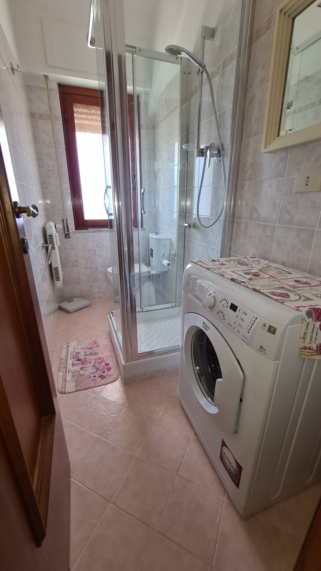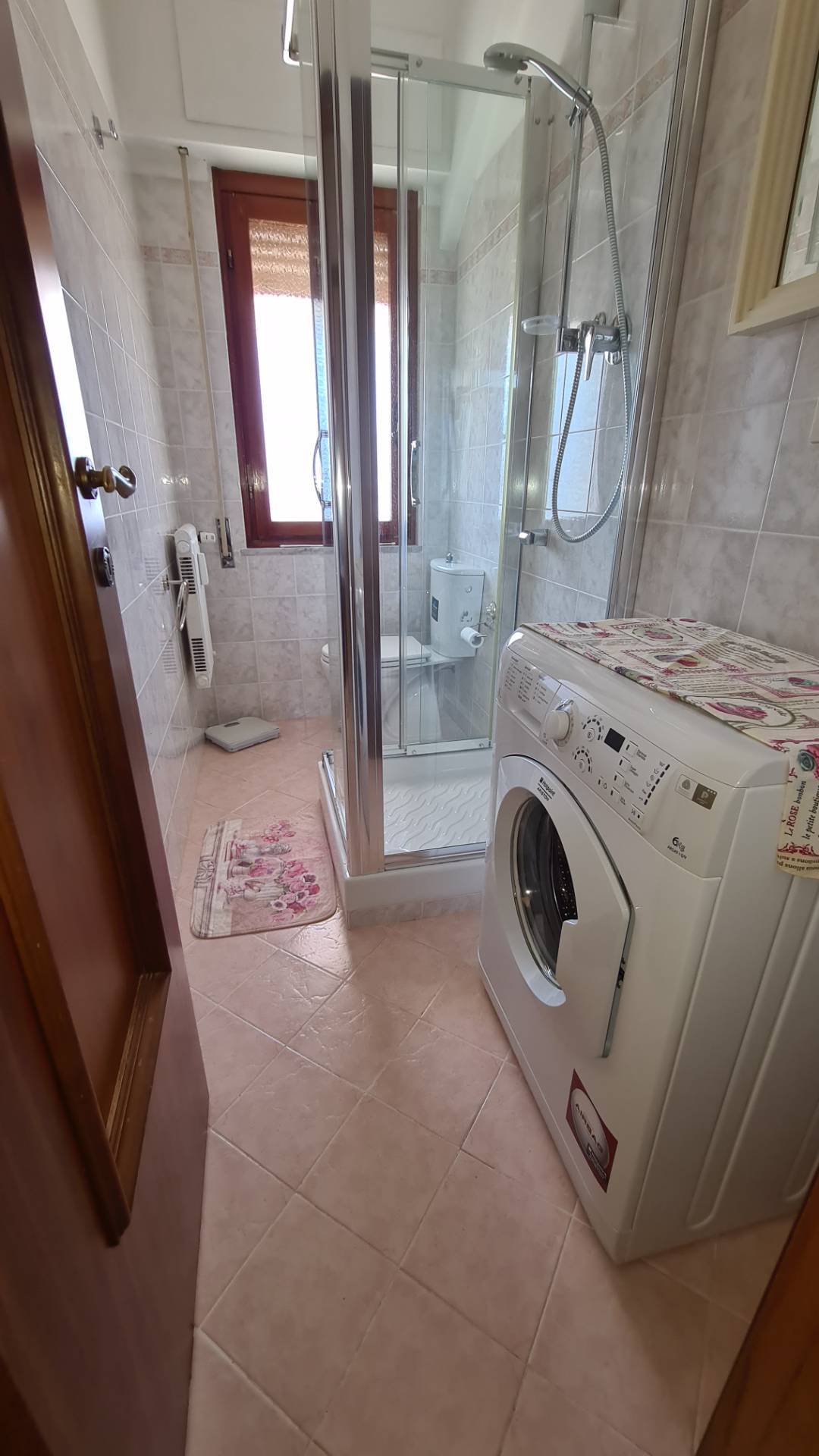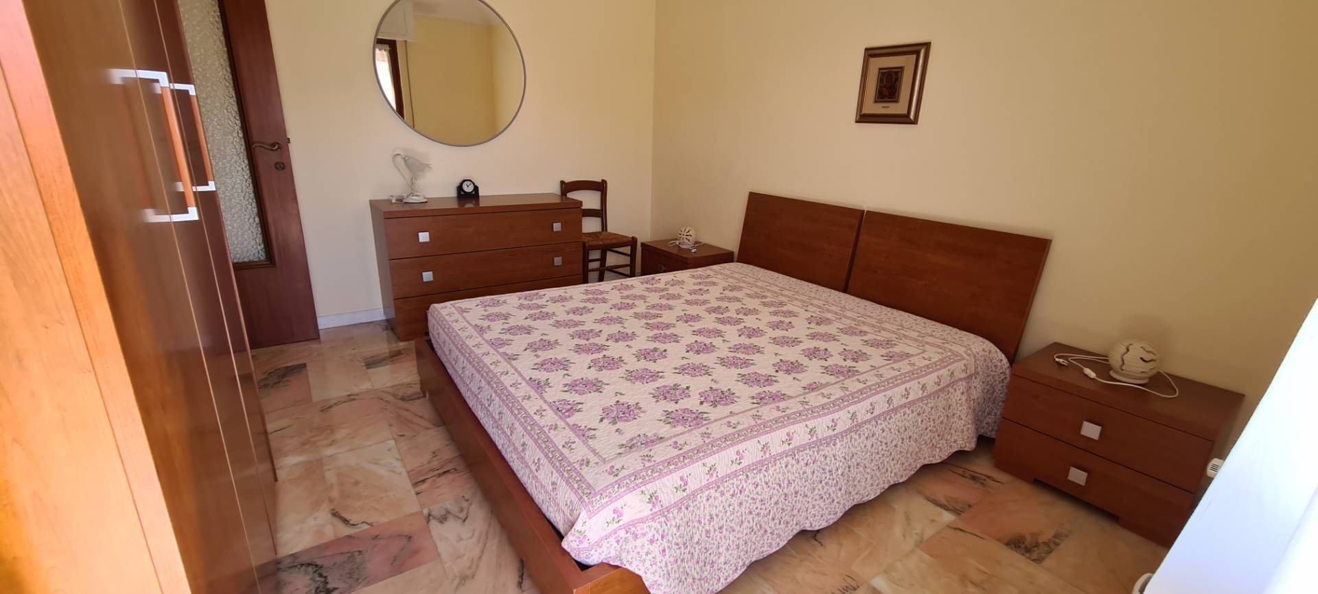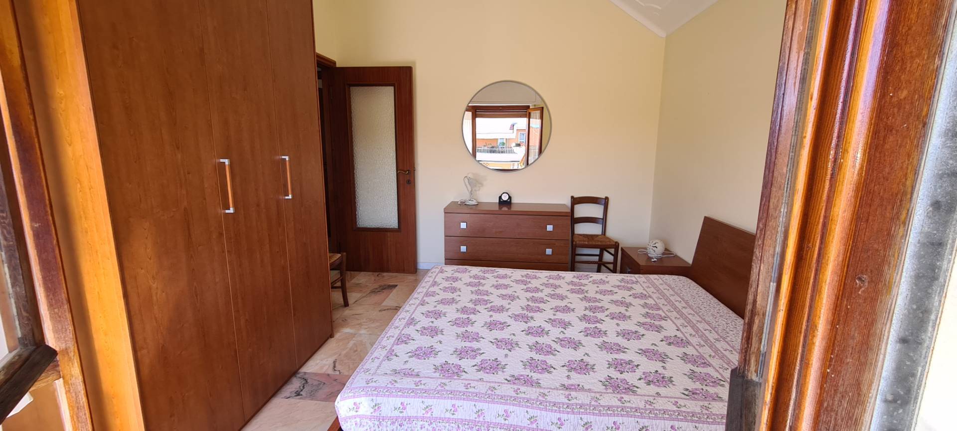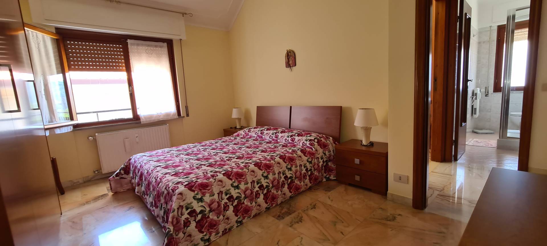 L' immobile, totalmente arredato, composto da ingresso, soggiorno, cucina ( dotata di lavastoviglie e microonde), 3 camere matrimoniali, doppi servizi entrambi finestrati di cui uno con doccia e l'altro con vasca, ripostiglio, armadio a muro nel corridoio, balconata perimetrale e porzione a uso esclusivo di terrazza a tetto.
