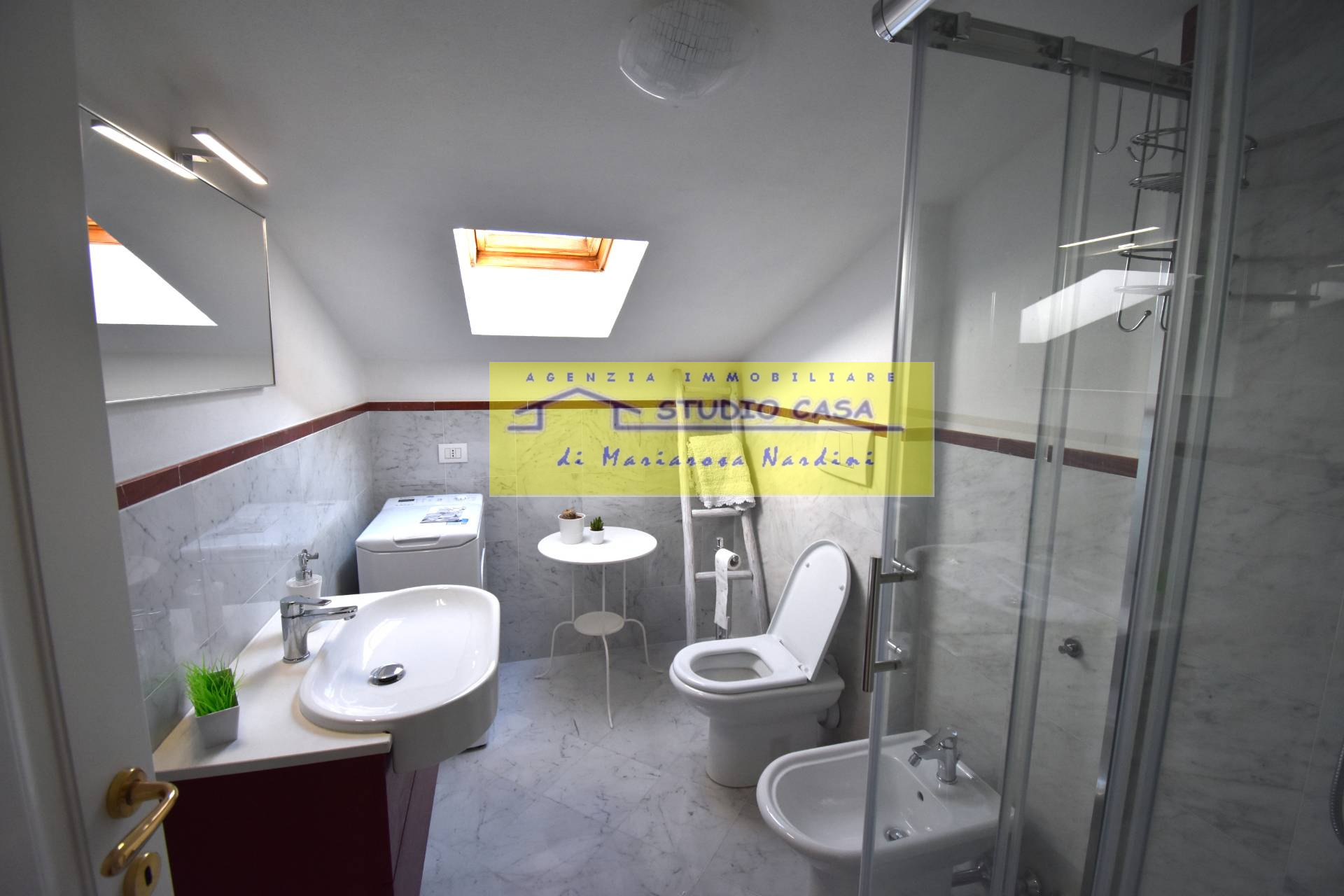 Nuovissimo in pieno centro in strada silenziosa a due passi dalla spiaggia , l'appartamento si trova al piano attico di un bel palazzo del centro di recente ristrutturazione.