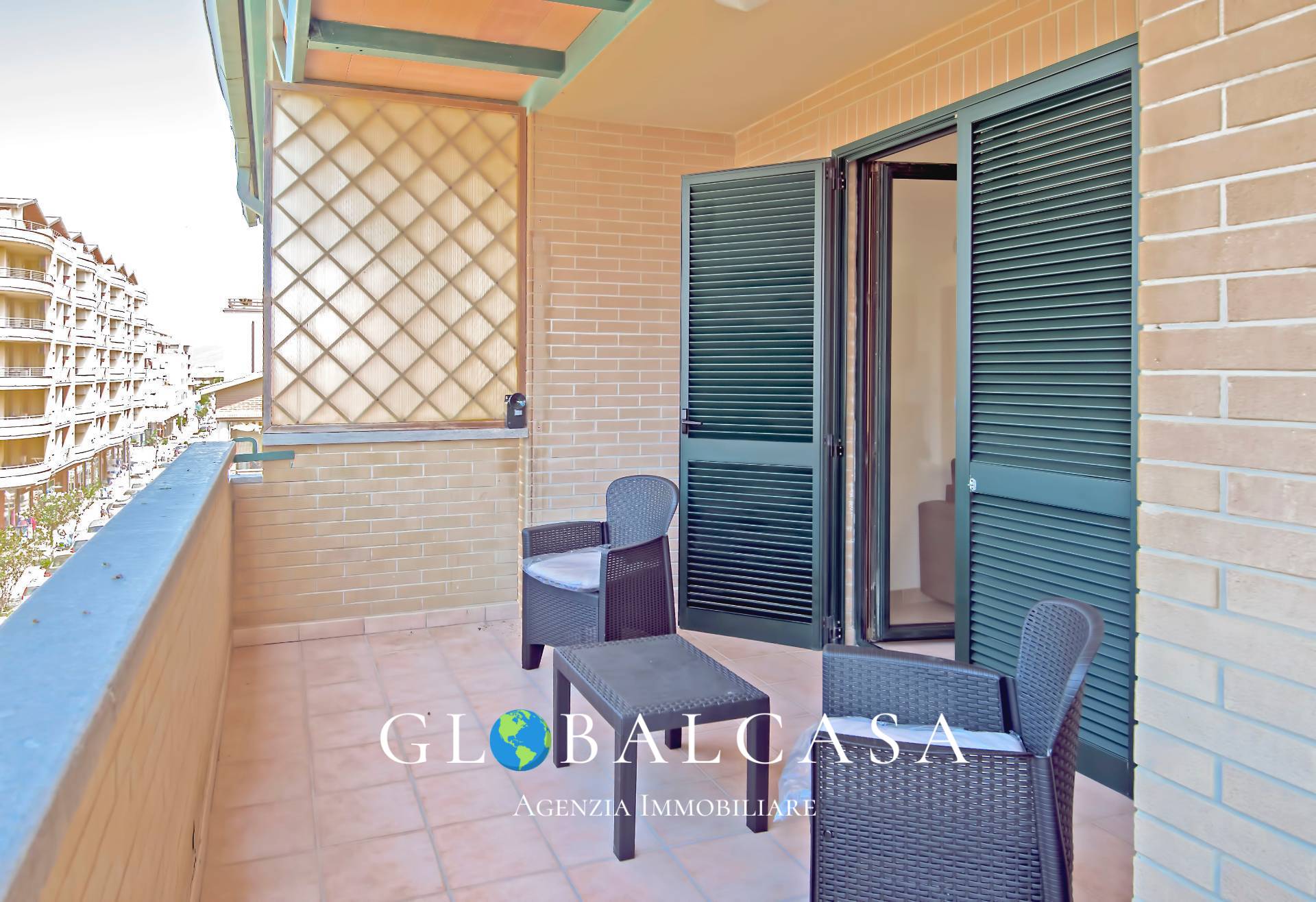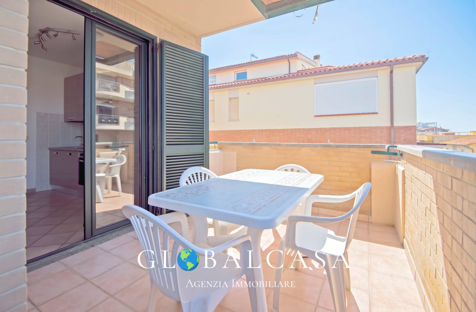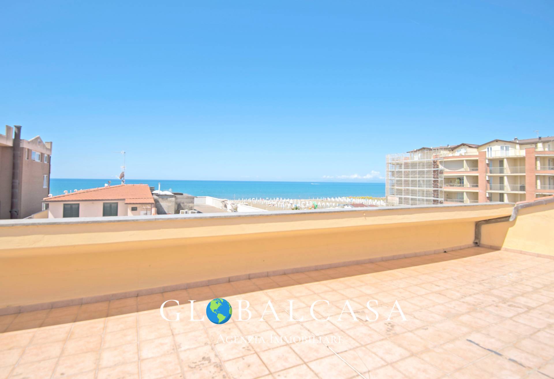 MARINA DI GROSSETO ZONA CENTRALE - ATTICO VISTA MARE - LOCAZIONE ESTIVA - Al terzo e quarto piano con ascensore di una palazzina in zona centrale con vista mare ( meno di 50 mt dalla spiaggia), proponiamo in locazione stagionale estiva, attico composto da ampia zona giorno con divano letto ed angolo cottura, bagno con doccia, camera da letto matrimoniale, con accesso dal soggiorno ampia terrazza vista mare; al piano superiore cui si accede da scala a vista dal soggiorno, salottino, camera con letto matrimoniale e lettino, bagno con doccia e grande terrazza con magnifica vista mare. L'appartamento dispone di 7 posti letto, TV, Lavatrice, Climatizzazione.