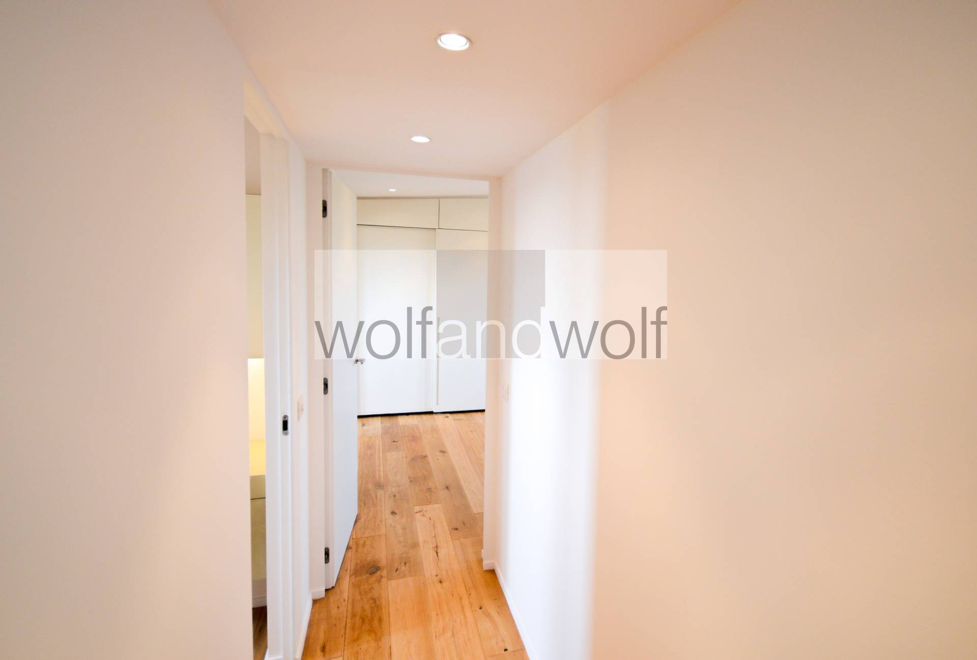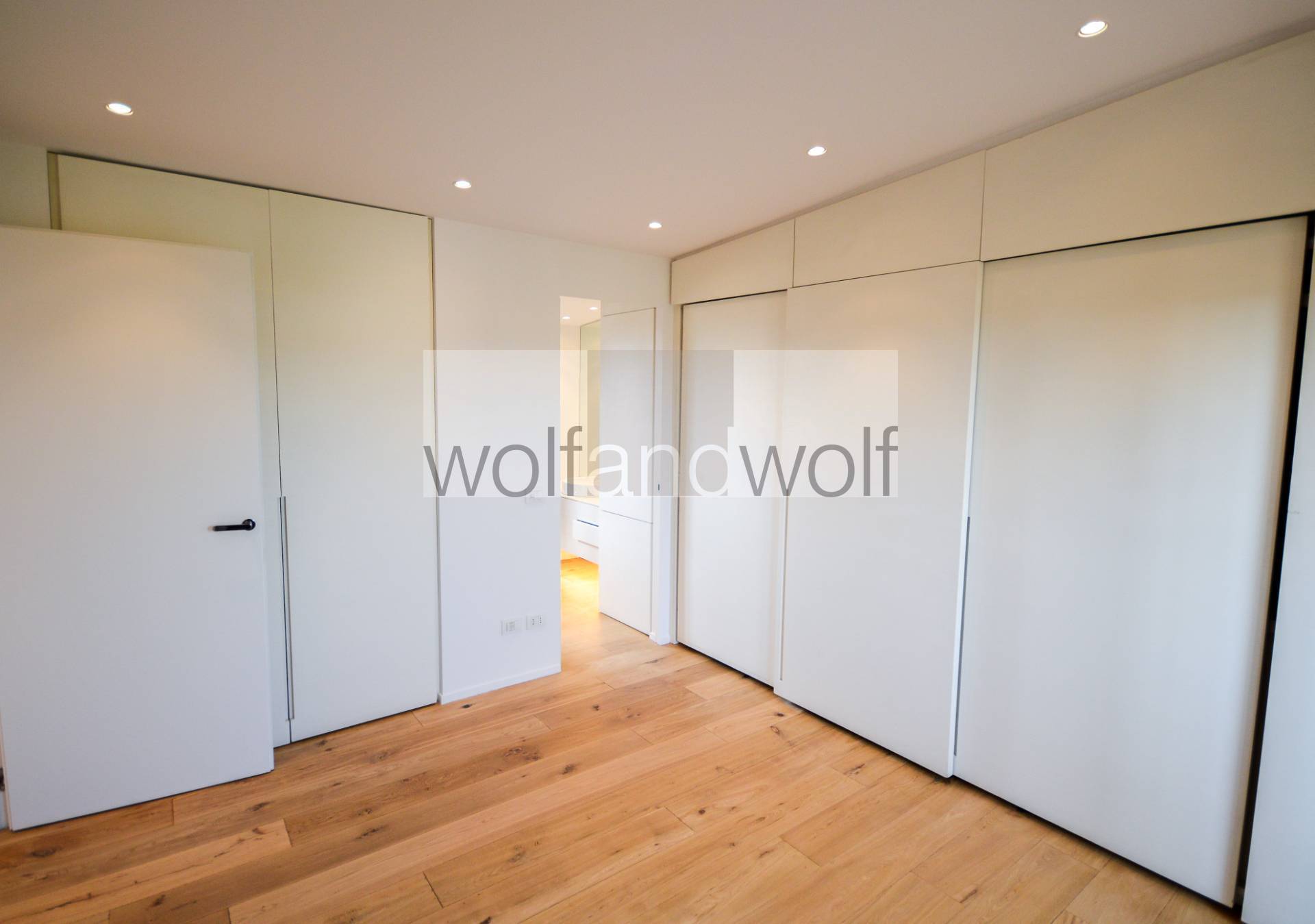 Appartamento molto luminoso, composto da cucina abitabile separata dalla zona giorno da una parete in vetro scorrevole, due bagni e due camere da letto di cui una con bagno en-suite; i bagni sono realizzati in resina.