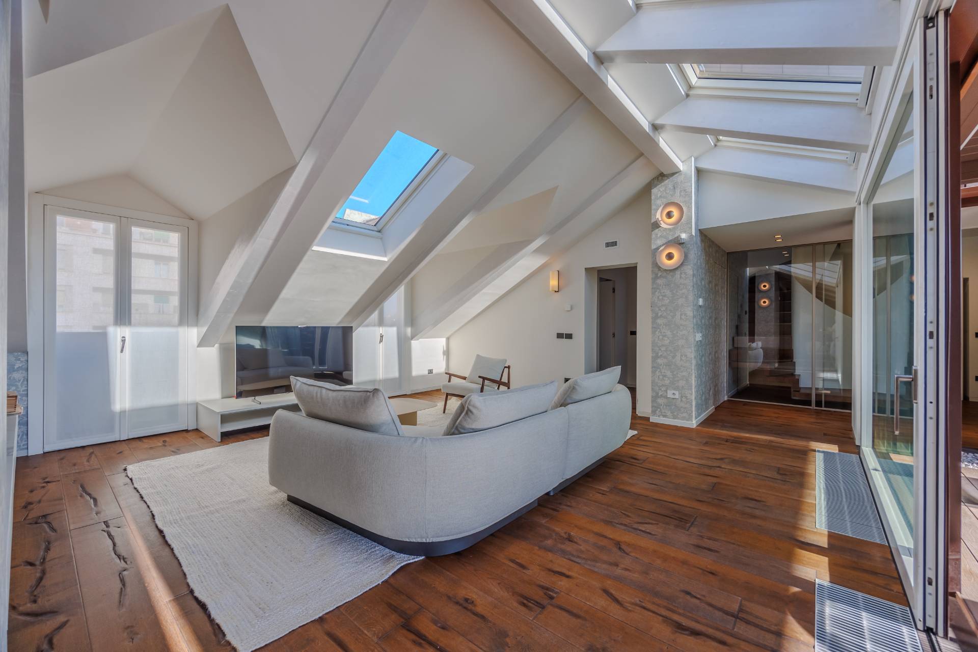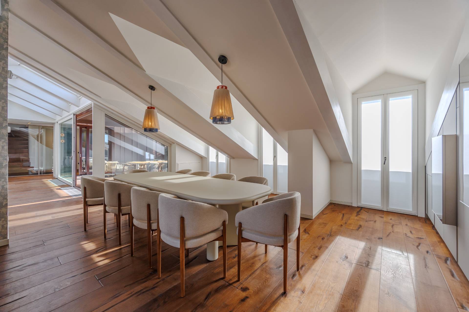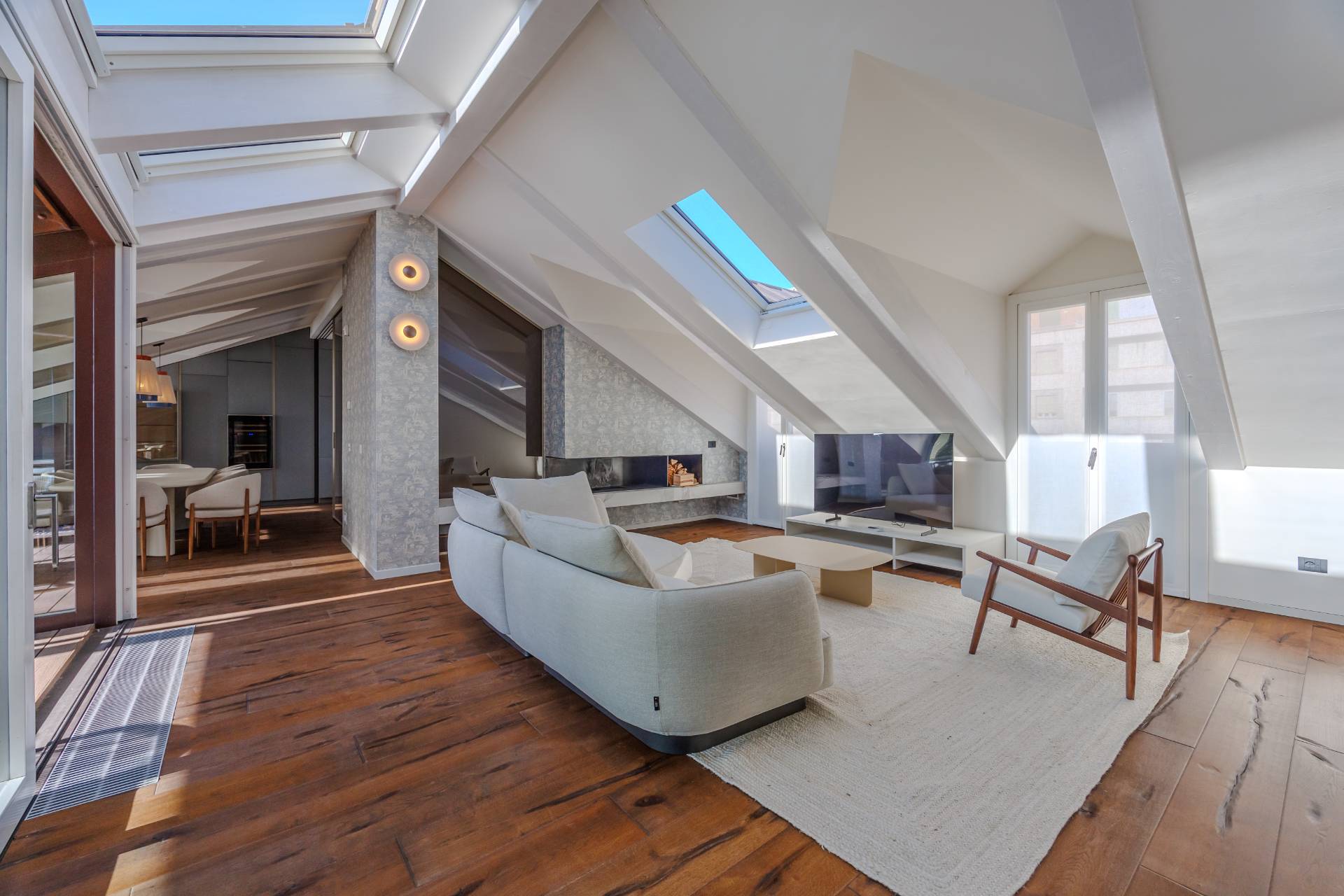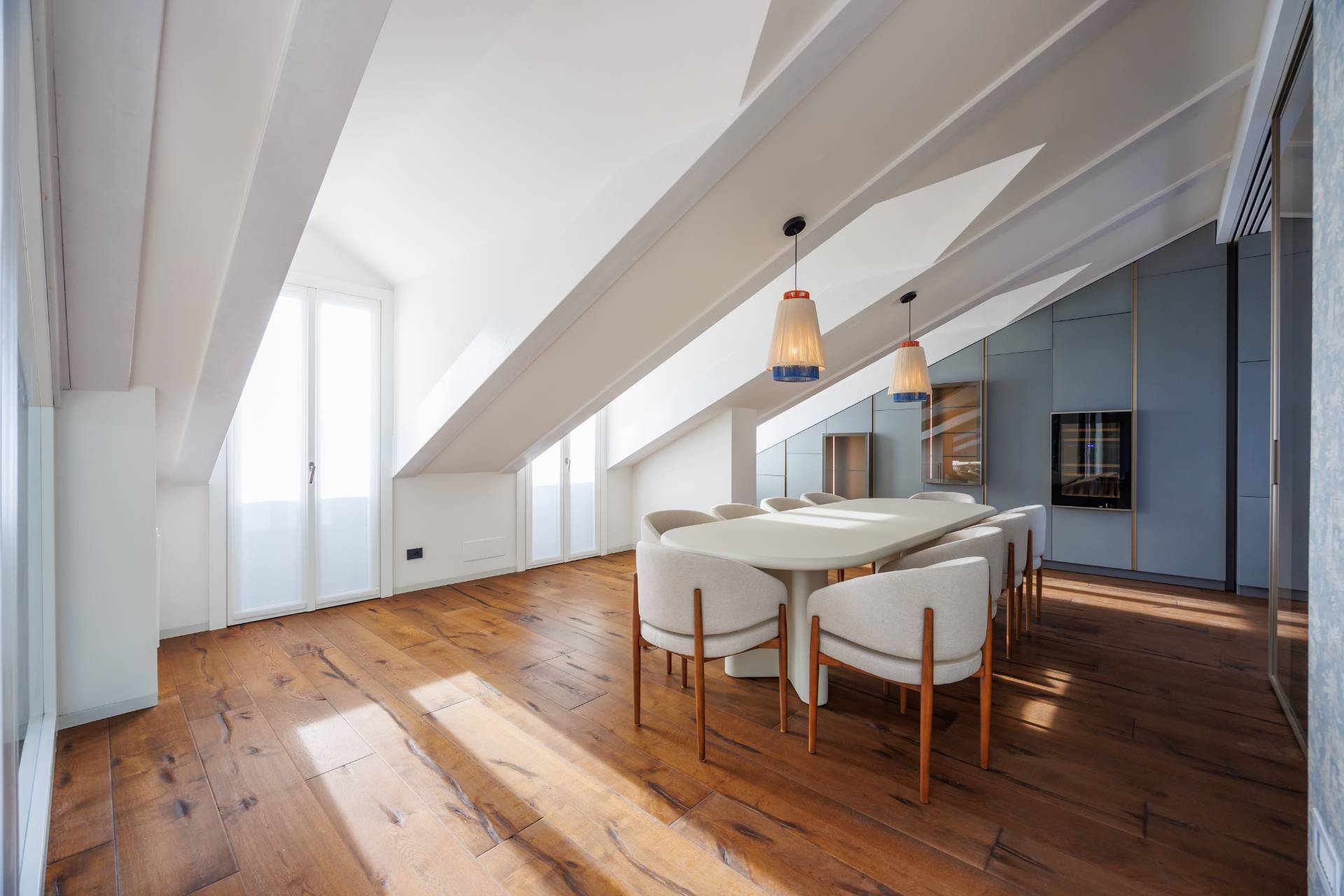 In elegante palazzo di inizi 900, esclusivo progetto residenziale ottenuto recuperando ed ampliando il livello delle soffitte trasformandole in una moderna residenza di rappresentanza con vista sui tetti di Torino.