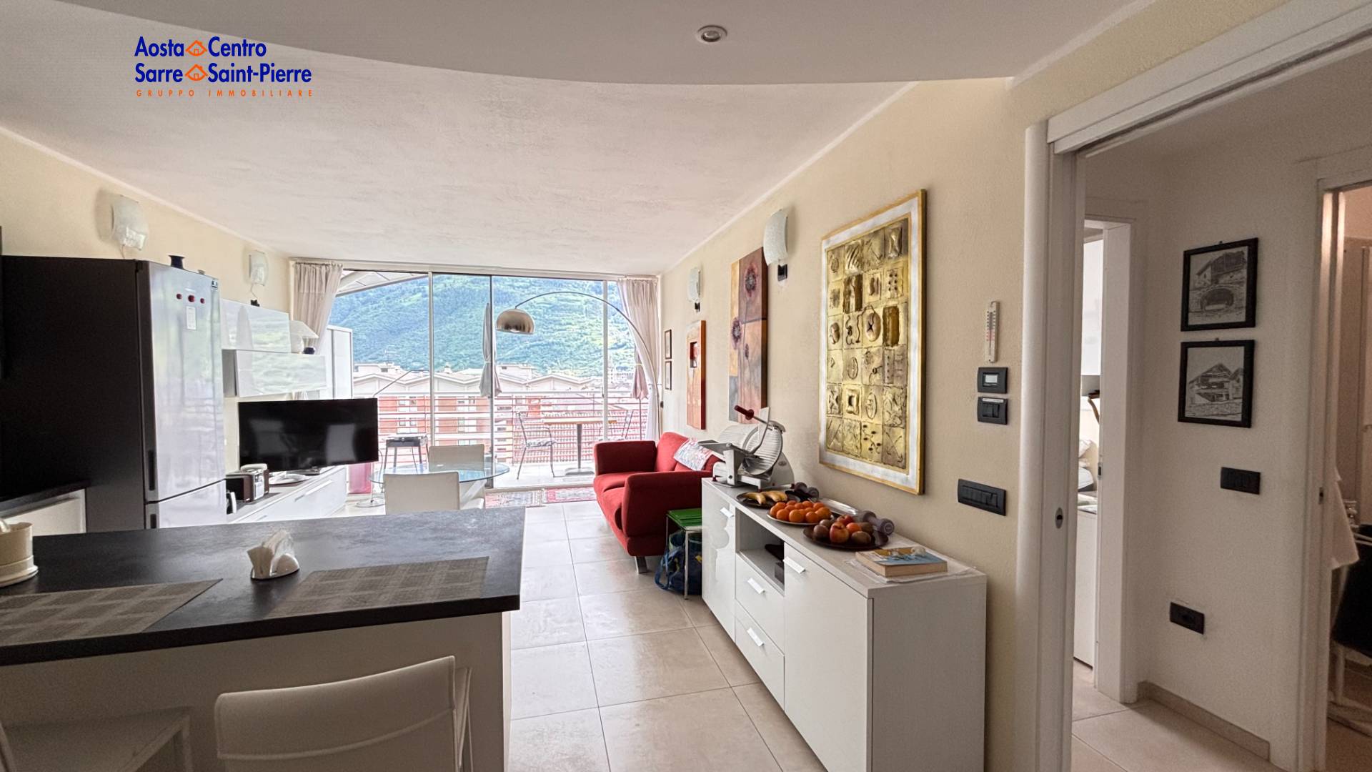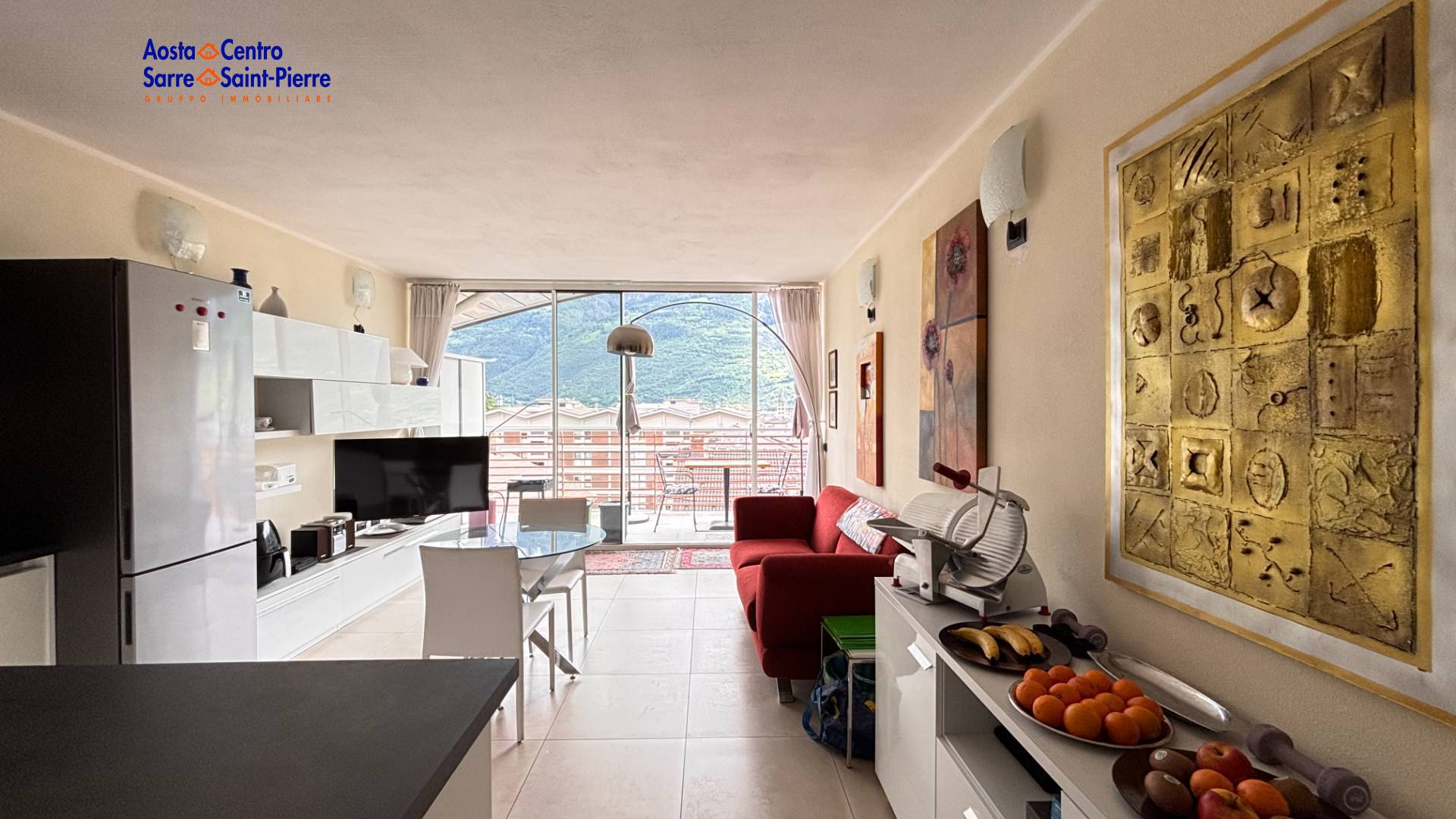 Aosta-Viale Gran San Bernardo Proponiamo in vendita, in esclusiva, a pochi passi dall'ospedale Umberto Parini e dal centro storico della citt, splendido attico realizzato con finiture di pregio, posto all'ultimo piano del condominio denominato "Residence Michelangelo" servito da ascensore.