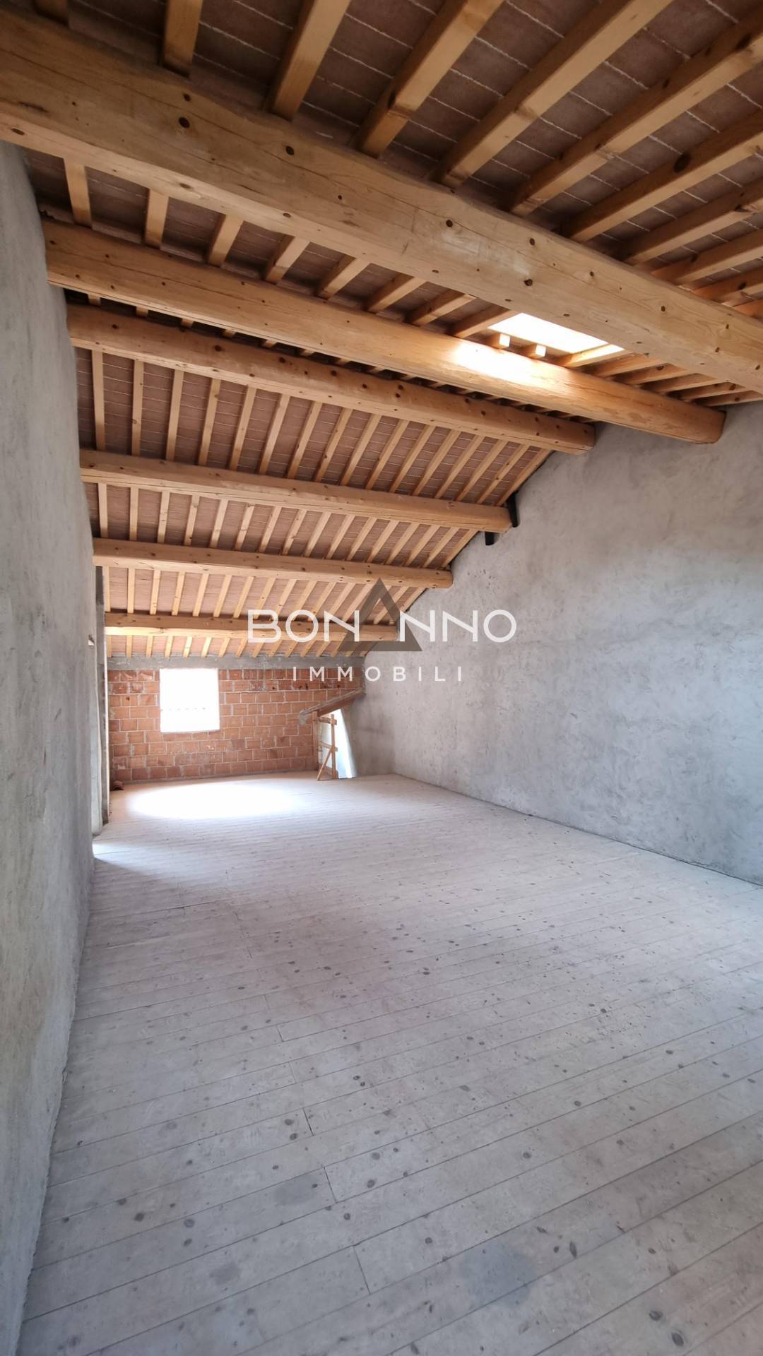 Il tetto nuovo ventilato e isolato a regola d'arte, tutto travato con legno a visto con velux per fare passare ulteriore luce. Consideriamo che tutti i piani sono caratterizzati dalla travatura in legno a vista, e che la zona notte nella parte centrale gode di altezze importanti, che permettono anche una parte soppalcata da sfruttare sia dal punto estetico sia funzionale.