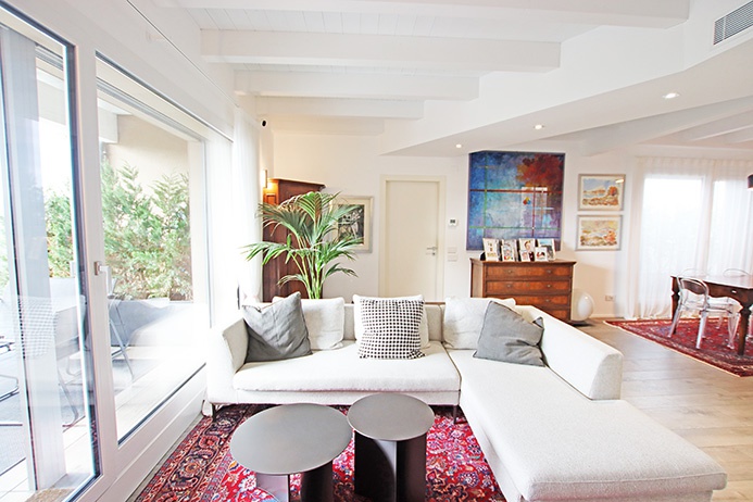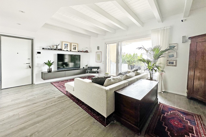 Internamente l'appartamento perfettamente rifinito in ogni dettaglio, pavimentazioni in gres simil legno dalla massima durabilit e semplicit di manutenzione, eleganti bagni moderni con sanitari sospesi, doccia e vasca da bagno, oscuranti glisser motorizzati, antifurto, rifiniture di design, impianto di riscaldamento e raffrescamento a pavimento, impianto di ventilazione meccanica forzata con deumidificazione.
