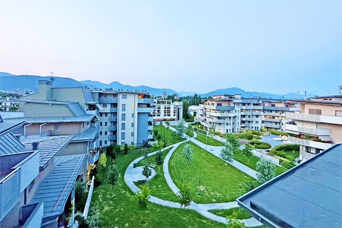 - BERGAMO _ BORGO PALAZZO Moderno ed elegante attico panoramico di nuova realizzazione di mq 150 dotato di 50 mq di terrazze con idromassaggio, grande cantina di mq 25, ampia autorimessa e possibilit di acquisto di secondo garage all'interno dello stabile.